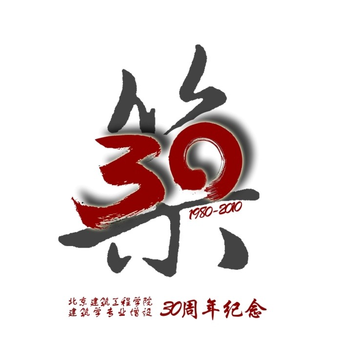 为更好地营造学术氛围,彰显建筑特色,2009年建筑学院召开学生学术年会,时任院学生会主席史磊,在学院教师的指导下,设计出了由红、黄、蓝、灰四种颜色的色块拼接而成的“建”字,作为学术年会的会徽。其寓意一是选用红、黄、蓝三种基础色,既能调和出千变万化的色彩,又代表当时的建筑学、城市规划、工业设计三个本科专业和建筑学系、城乡规划学系、设计学系,灰色块代表未来的学科专业发展新的增长点。二是四个色块刚好拼接成一个“建”字,既代表建筑学院能海纳百川,接纳从四面八方来此工作的老师、求学的学生及与校外的交流,又代表着学院注重不同学科、不同专业、不同层次之间的学术交融与碰撞,同时寓意着建筑学院注重共性和谐、个性张扬的大家庭。在访问建筑学院网站,进入主页之前所选取的动画“建”字,既考虑了古建筑榫卯的拼接顺序,又考虑了我们书写中国文字的笔画顺序,建筑的动感之美不免让人眼前一亮。2010年建筑学专业增设30年之际,已毕业校友史磊,在学院教师的指导下又设计了30年纪念徽,即繁体“筑”字,其与“建”字遥相呼应。“建”、“筑”两徽合用,既有灵动建筑构造之动感,又有中国传统繁体文化之神韵。