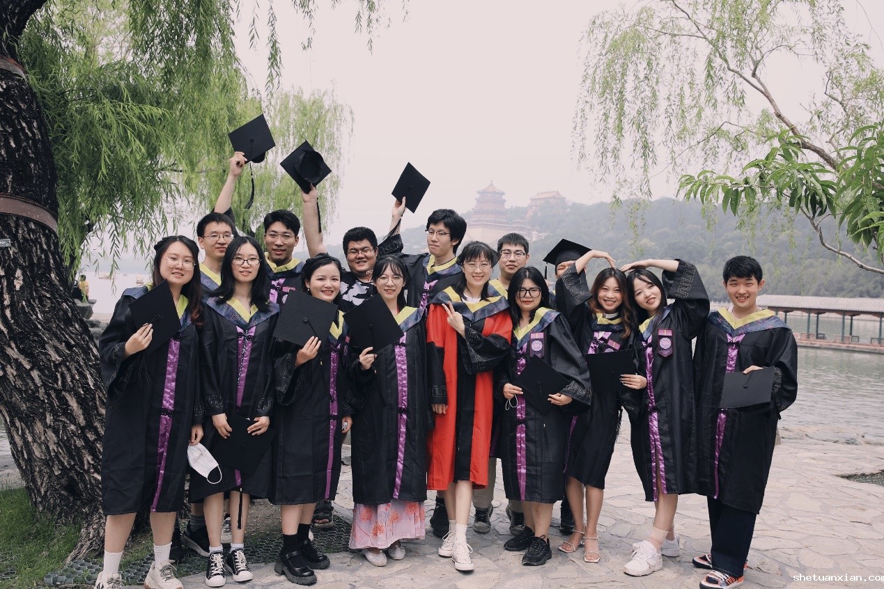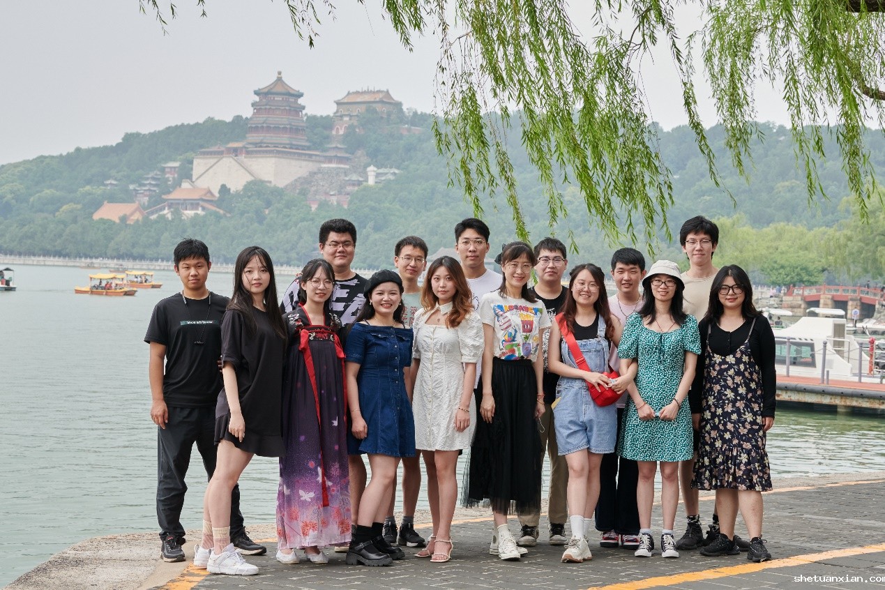图说:李露与园林171班学生在颐和园拍摄毕业照
