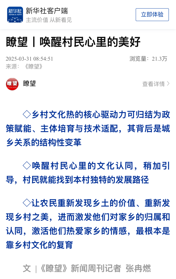 《瞭望》:乡村文化中的哪些元素最容易引起公众的共鸣和兴趣?