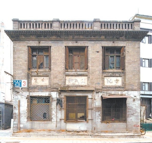 正面看,这幢小楼分为东、中、西三部分,三部分建筑形态基本一致,由东向西,石匾上依次镌刻着"木□""同兴和""古玩"的字样。