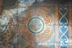 "太精美了!"今年年初,在清理现场,工人们掀开一楼的隔板,清理掉管道上40厘米高的覆土,水泥花砖意外跃入眼帘。花砖由四块面砖拼接成一个圆形图案,正中一朵霸王花,图案由朱红色、橘黄色、宝蓝色、浅褐色等6种颜色组成,用布擦拭后,色彩斑斓,轮廓线清晰可见,立体感十足。