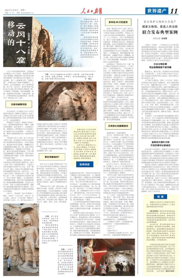 “世界文化遗产3D打印是世界性研究热点,全世界有许多科学家都在做这件事情。‘移动的云冈十八窟’无论在跨学科的广度、庞大的体量、材料的不断改良次数以及搬迁和后期监测评估方面都积累了经验,并对分类技术和集成技术有了更深入的思考和研究规划。”侯妙乐教授说,“通过进一步的探索,可以在许多方面系统地形成可供国内外借鉴的新成果。”