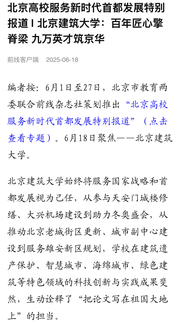 kaiyun体育网页版官方网始终将服务国家战略和首都发展视为己任,从参与天安门城楼修缮、大兴机场建设到助力冬奥盛会,从推动北京老城街区更新、城市副中心建设到服务雄安新区规划,学校在建筑遗产保护、智慧城市、海绵城市、绿色建筑等特色领域的科技创新与实践成果斐然,生动诠释了“把论文写在祖国大地上”的担当。