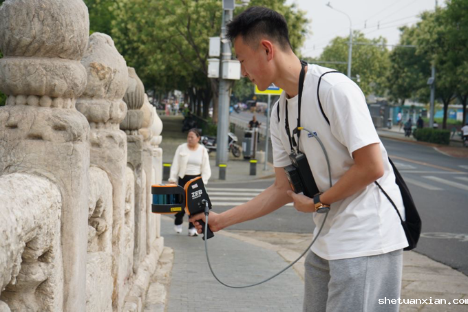 2024年夏天,中轴线上,万宁桥旁,北建大学生李骐羽和团队同学一起头顶骄阳,利用手持激光扫描仪、数码相机等设备,以毫米级精度对桥体各部位进行全方位扫描,采集这座古老桥梁的含水率、硬度、光泽度等信息,获取了大量高清影像,为后续的病害分析、保护方案制定打下坚实的数据基础。这群大学生忙碌的身影,出现在中轴线主题宣传片中,向世界展示了北建大学子的风采。此次科研实践活动由北建大测绘学院和北京市考古研究院联合开展。自2022年开始,这支团队就开始围绕北京中轴线上的重要文物进行数字修复探索,相继为正阳桥疏渠记碑、先农坛中的地祇坛进行虚拟复原。