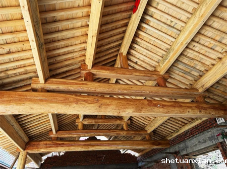 正在翻建的农房内部 传统建造技艺应用其间