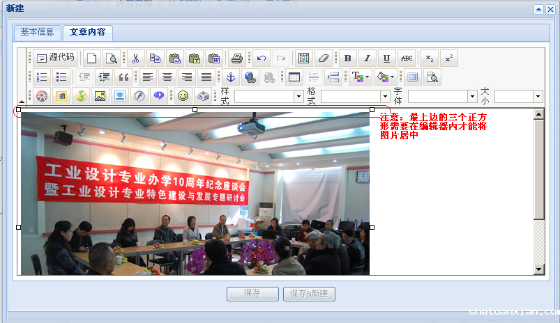 新闻中的相关图片严禁发布原始照片,要求一律用图像编辑软件(光影魔术手、photoshop等)修改为JPG格式文件,宽度为500像素,高度为333像素,文件大小不超过1M,每篇新闻中的图片一般不超过三张,特殊情况图片较多时,可将多幅图片缩小合并为一张(如有多人发言时),排版时请注意要加上图片的文字说明。