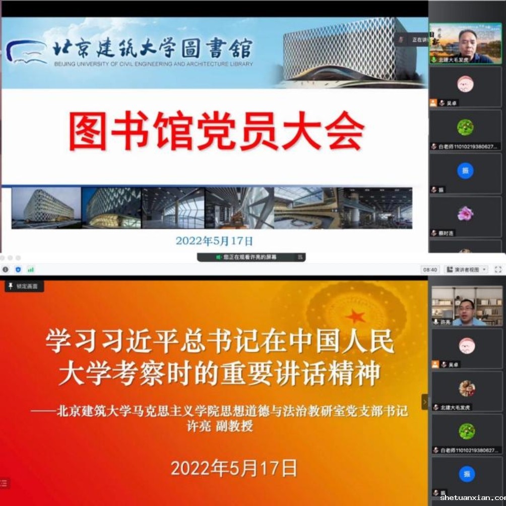 5月17日,图书馆直属党支部以线上形式召开党员大会,专题学习习近平总书记在中国人民大学考察时的重要讲话精神。大会邀请学校“永远跟党走”党史教育宣讲团宣讲员、马克思主义学院“思想道德与法治”教研室党支部书记、图书馆直属党支部理论导师许亮副教授做题为《习近平总书记在中国人民大学考察时的重要讲话精神》辅导报告,会议由图书馆直属党支部书记兼副馆长毛发虎主持。