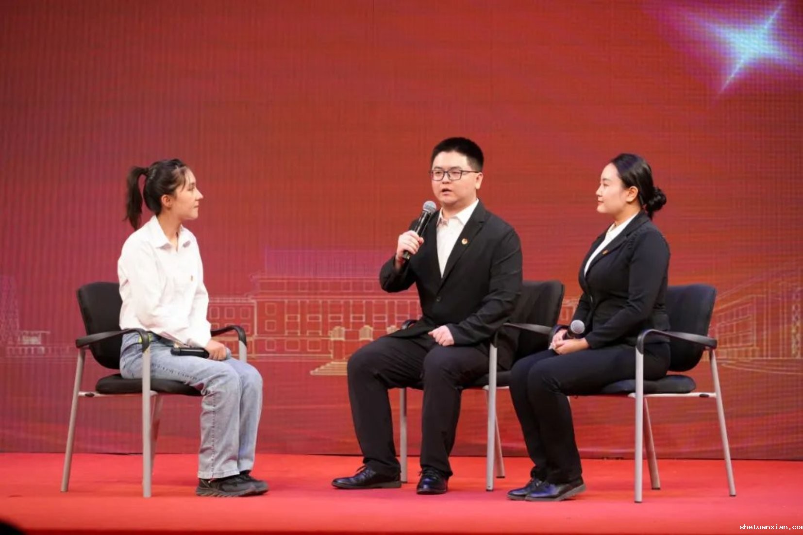 在《向西部・致青春的光与热》访谈环节,报名今年西部计划的智科学院21级本科生萨拉买提・艾力亚司与全国西部计划优秀志愿者理学院理研21班王佳男、经管学院社研20级校友姚姗姗围绕西部计划志愿服务经历展开对话。王佳男分享在新疆和田投身基层治理、乡村振兴调研的经历,以实际行动践行青年担当;姚姗姗讲述初到西部克服不适、服务民生的成长故事。两位志愿者扎根基层、无私奉献的精神,生动诠释了“祖国需要处,皆是我故乡”的信念,也激励着在场的青年学子们投身西部建设,到祖国和人民最需要的地方发光发热。