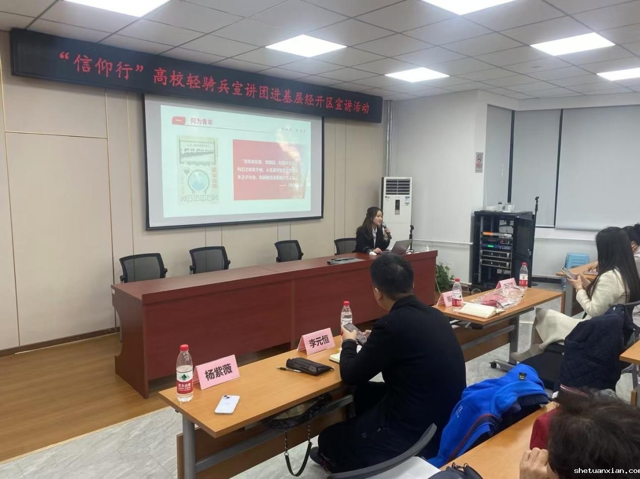 在本次评选活动之前,我校马克思主义学院“青马筑梦”理论宣讲团还受邀参加展览路地区党建联建共建工作推进会暨学区理事会,宣讲团带来《以“挺膺”之姿,赴青春之约》思政微课,用沉浸式展演诠释新时代青年的使命担当。