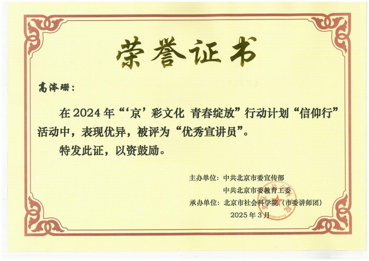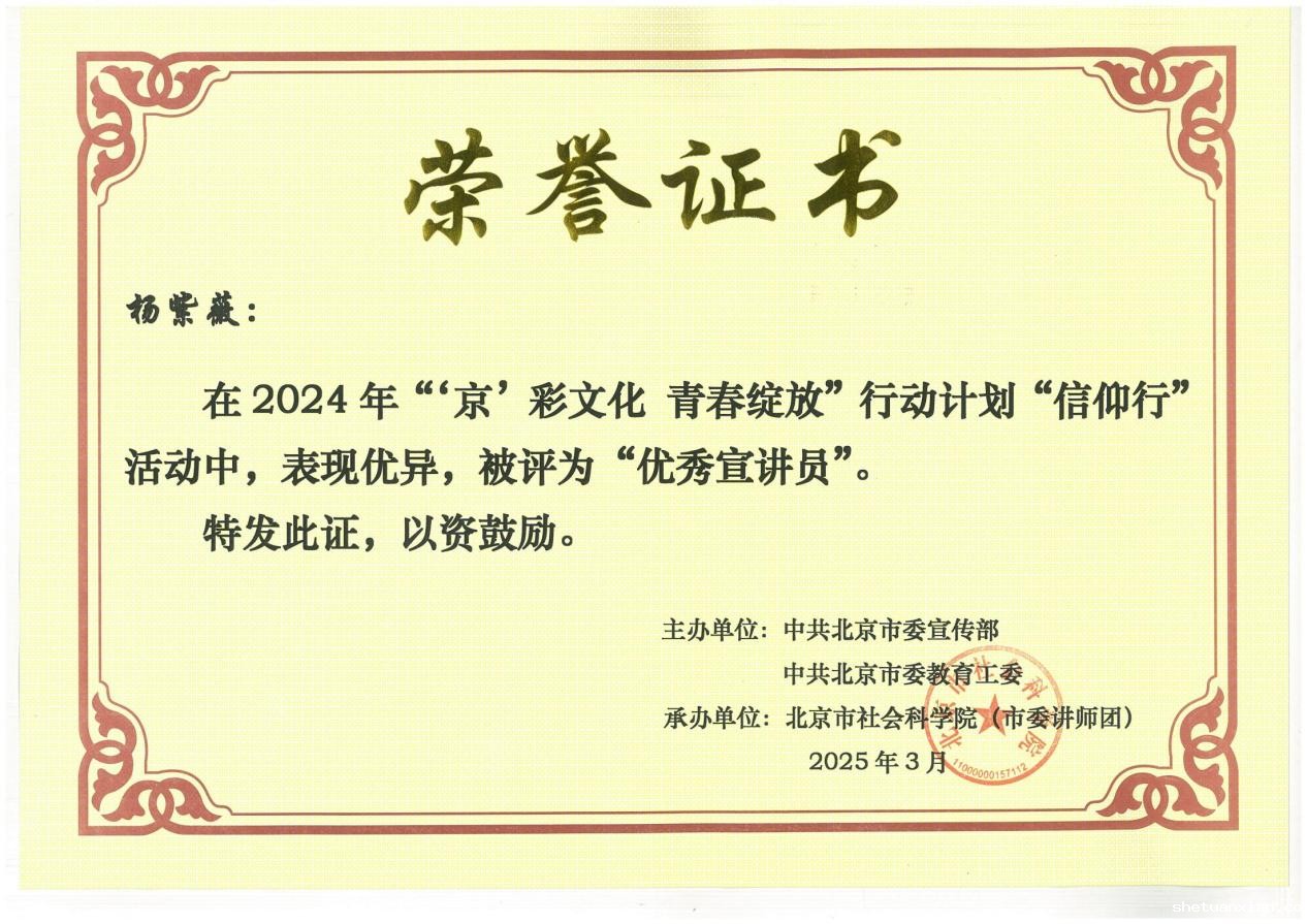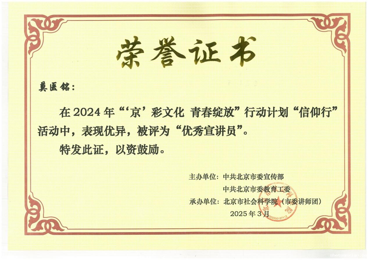 近日,由市委宣传部、市委教育工委、北京市社会科学院(市委讲师团)联合主办的“‘京’彩文化 青春绽放”行动计划之“信仰行”行动公布系列活动评奖结果,我校获得多个奖项。