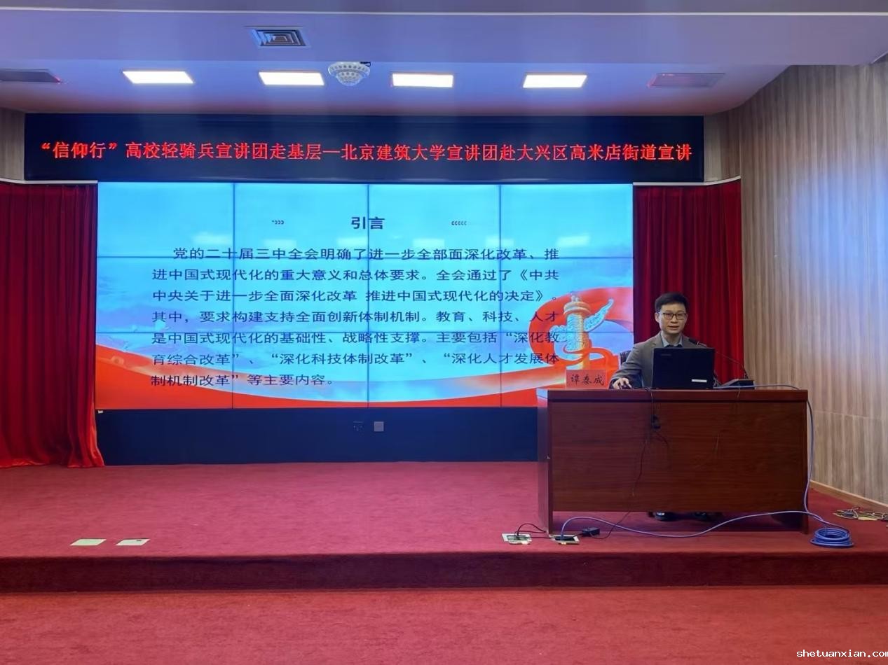 一直以来,学校高度重视“信仰行”行动开展。2024年,学校学生理论社团积极开展读书交流,深入学习党的二十届三中全会精神,举行“阅”享青春读书会、分享会等活动10余次,并走进城市副中心运河博物馆等地参观交流。开展“理”赞青春学习成果征集,报送读书心得、理论文章、调研报告64篇。开设“北建大理赞青春”微信公众号,建设理论交流、传播的网上阵地。推动“名师名家进校园”,多渠道、立体式开展9场高水平宣讲报告,一批理论名家走进北建大校园。在学校举办北京市“爱我国防”全民国防教育、北京市学习贯彻党的二十届三中全会精神“理论微宣讲”、北京市学习贯彻习近平文化思想百姓宣讲等系列宣讲活动,在校园引起强烈反响,深受师生好评。积极推进“生动实践面对面”,各学院先后组织300余名学生赴北京城市图书馆、首钢园、亦庄无人驾驶示范区、慕田峪长城等生动实践地参观实践打卡16场次,同学们深入感受新时代首都建设发展成果。党委宣传部带队赴门头沟区清水镇洪水峪村“青春走基层”,学生与村子开展深入交流。尤其是,积极推动“轻骑兵”走基层宣讲活动,学校专门召开走基层宣讲工作会,对宣讲工作进行系统总结和全面部署。2024年学校师生赴西城区、大兴区、经开区街道和社区进行宣讲,开展宣讲17场,大力推进“理论+百姓+文艺”宣讲模式,培育选送两支宣讲团队参加首都大学生宣讲大赛决赛,并在校内开展巡讲,既促进青年学子主动学理论、用理论,也带动党的创新理论“飞入寻常百姓家”。