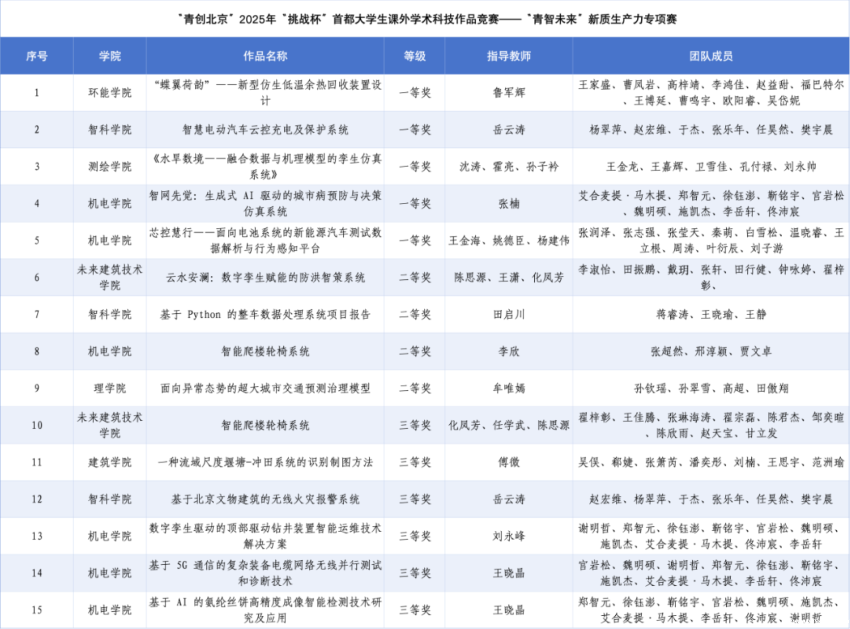 每一块奖牌都浇筑着智慧与热忱,从校内“鲁班杯”的初露头角到首都“挑战杯”舞台的强势突围,北建大学生创新团队用建大人的创新奋进重塑科技边界。