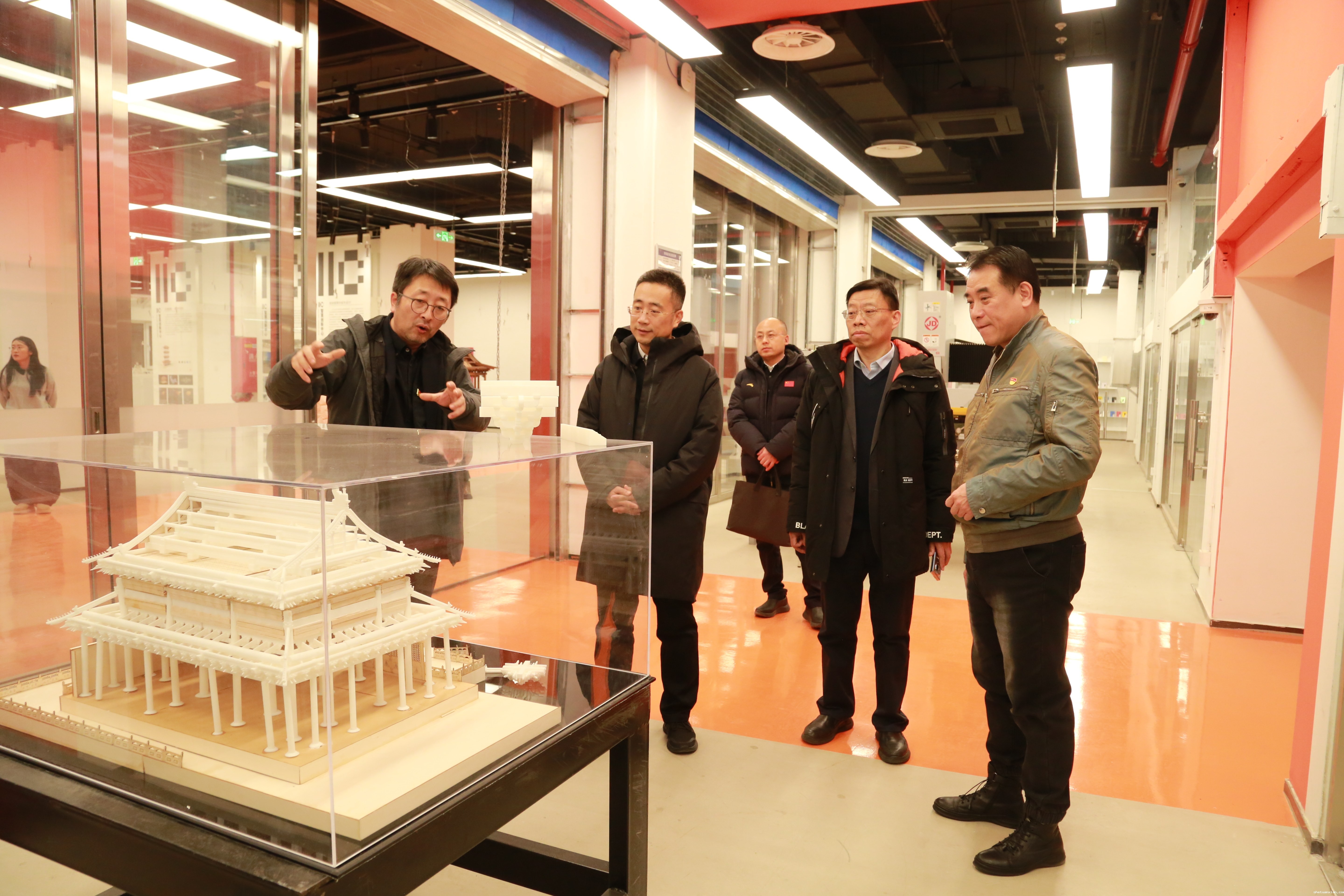 会后,王攀实地参观了学院自然建筑展、建筑馆、教师共享空间等办公空间,调研了虚拟仿真实验室、数字建造实验室、木作工艺等实验室。