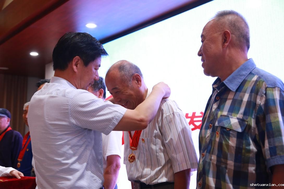 党委副书记陈刚亲切问候7位50年以上党龄老党员代表,并为他们颁发“光荣在党五十年”纪念章。