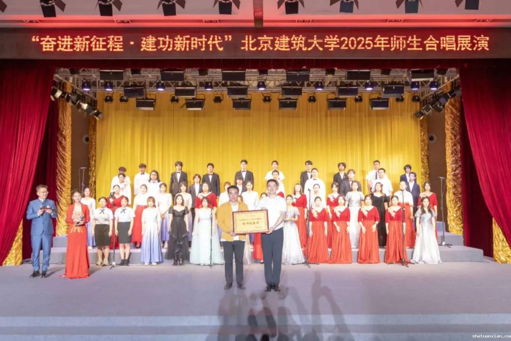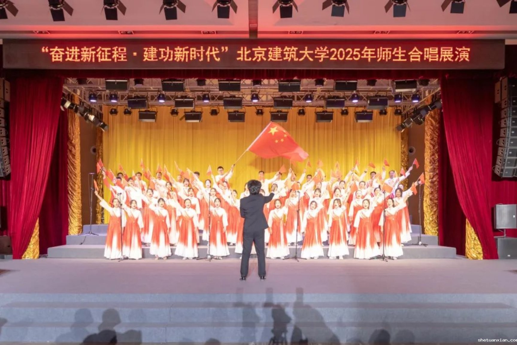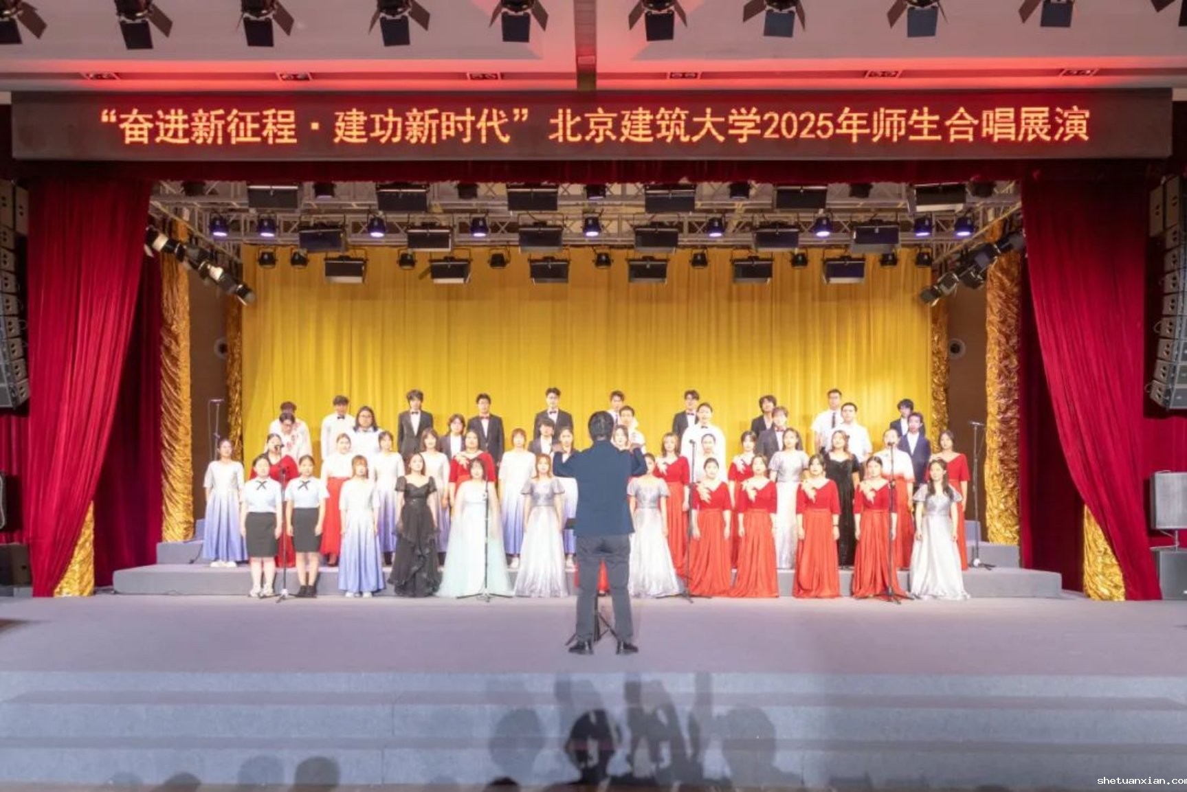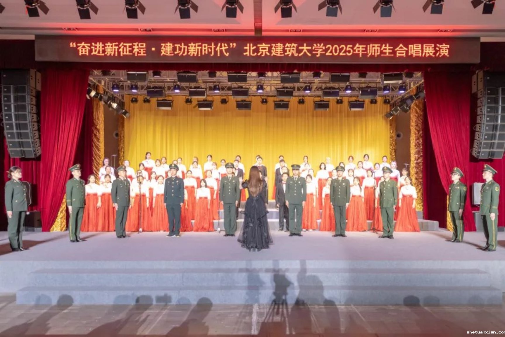 此次活动以纪念中国人民抗日战争暨世界反法西斯战争胜利80周年为契机,深入学习宣传贯彻党的二十大和二十届二中、三中全会精神,由校团委和校工会联合主办,11个学院师生组成合唱展演队伍,以歌声致敬时代,用旋律传递初心。