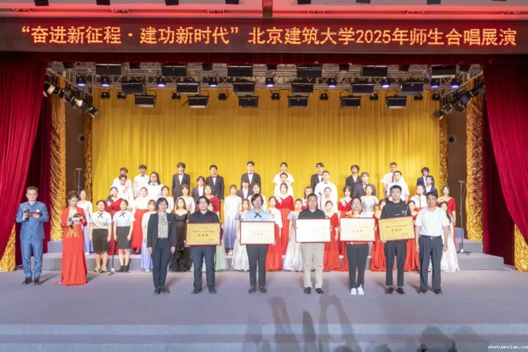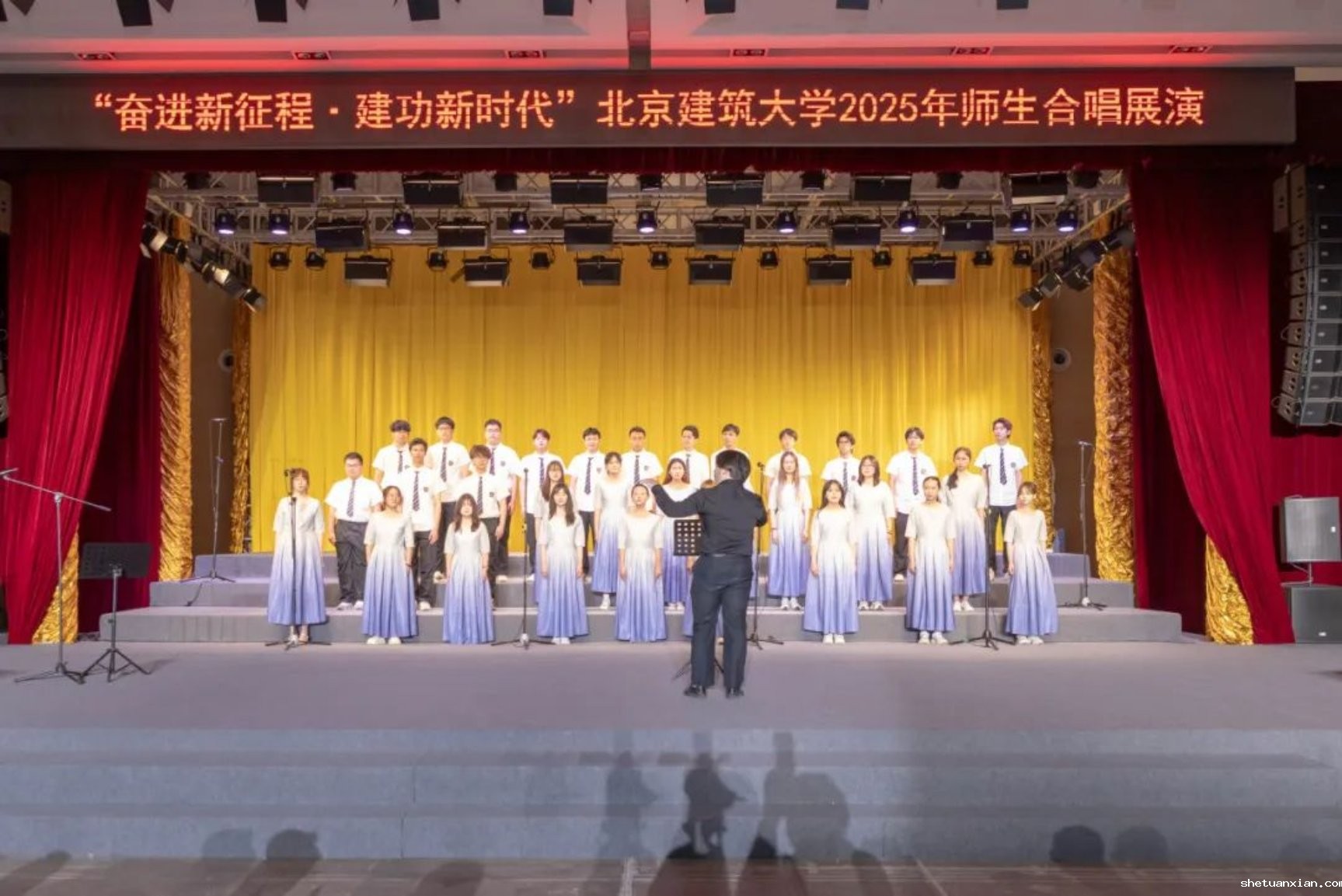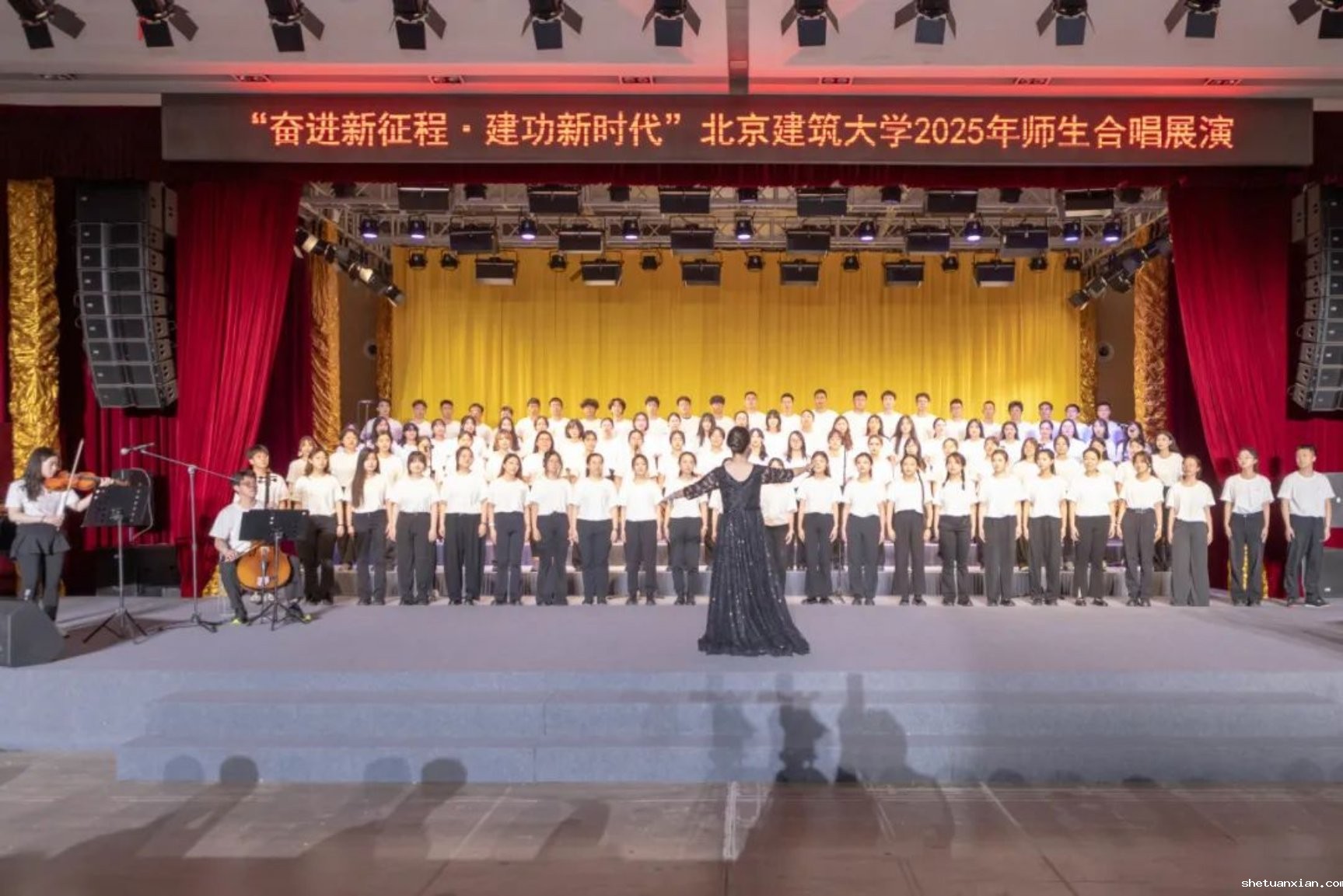 此次活动以纪念中国人民抗日战争暨世界反法西斯战争胜利80周年为契机,深入学习宣传贯彻党的二十大和二十届二中、三中全会精神,由校团委和校工会联合主办,11个学院师生组成合唱展演队伍,以歌声致敬时代,用旋律传递初心。