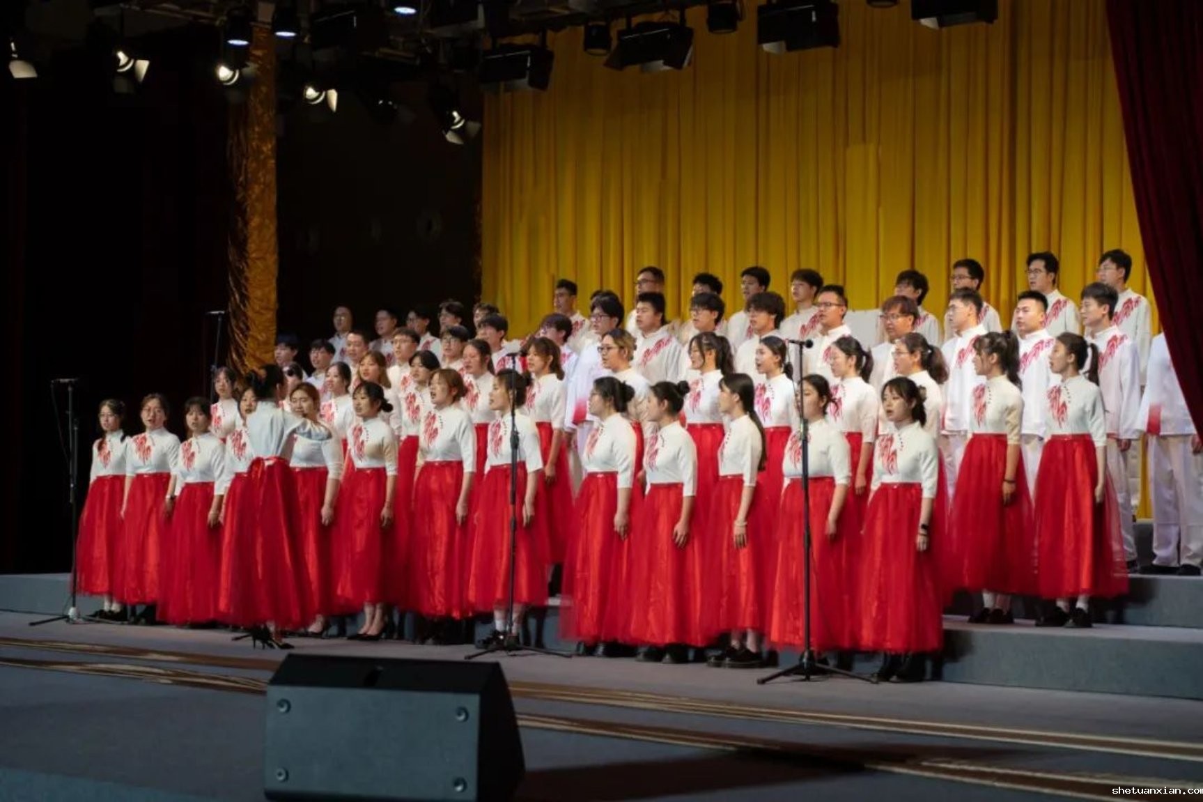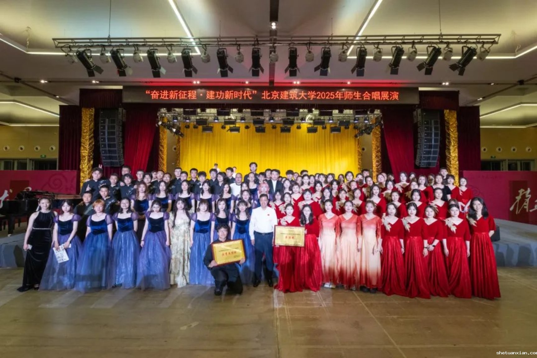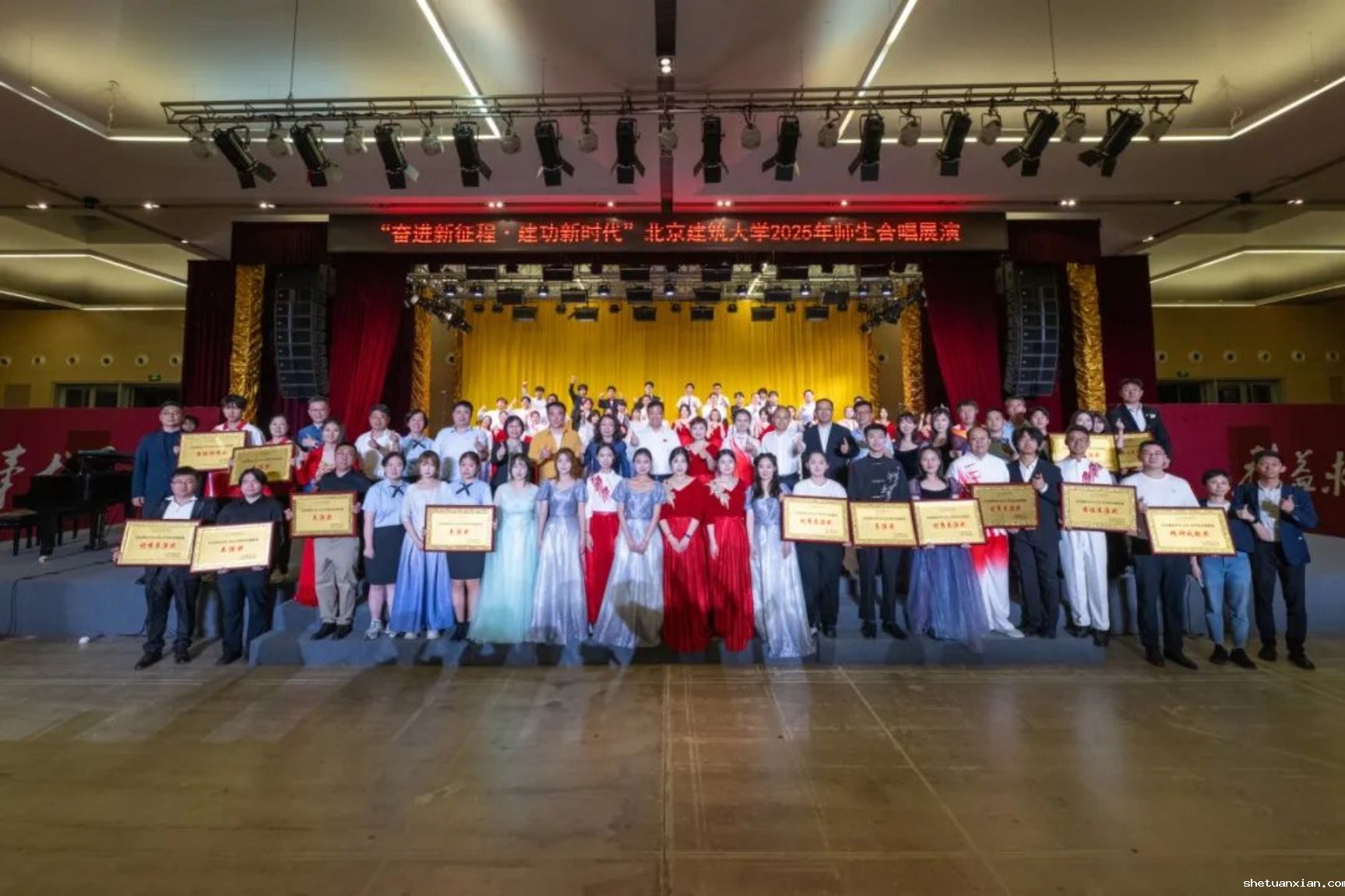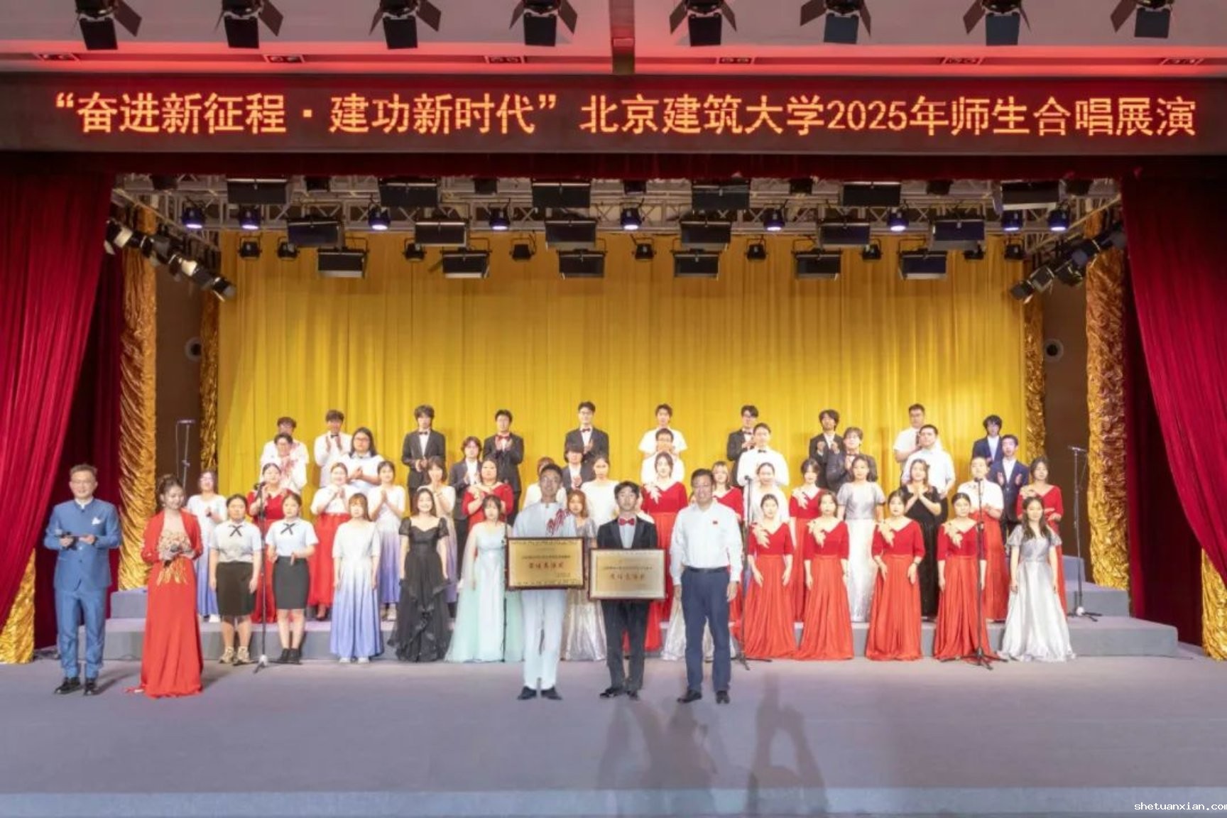 此次活动以纪念中国人民抗日战争暨世界反法西斯战争胜利80周年为契机,深入学习宣传贯彻党的二十大和二十届二中、三中全会精神,由校团委和校工会联合主办,11个学院师生组成合唱展演队伍,以歌声致敬时代,用旋律传递初心。