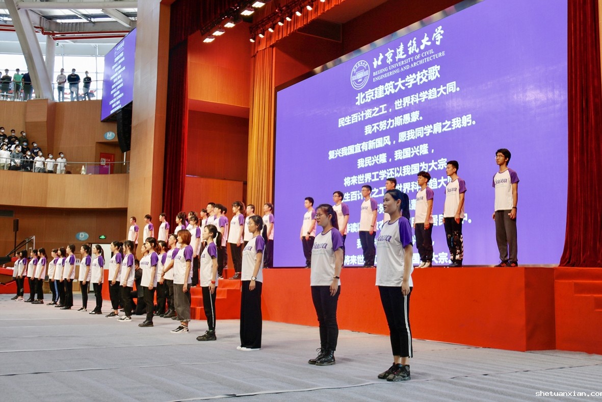 开学典礼在全场师生齐唱校歌声中结束。