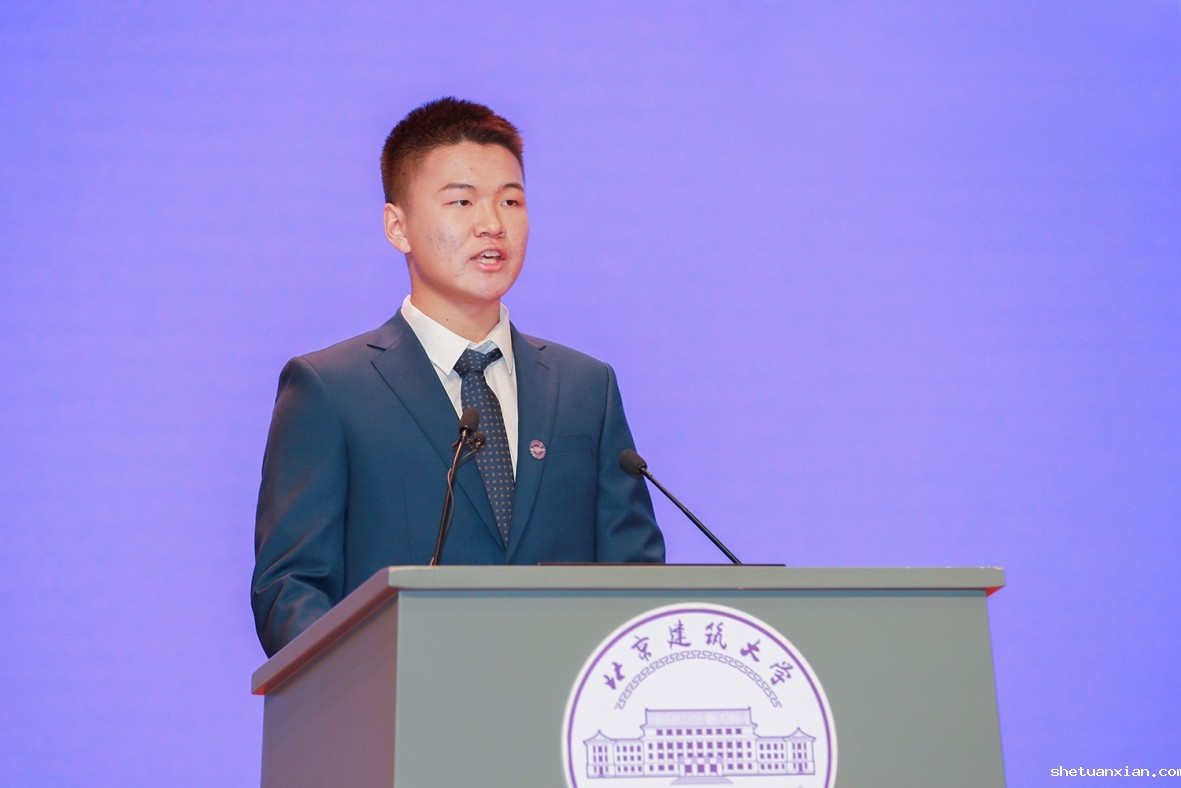 研究生新生代表、土木与交通工程学院博士生武丙龙分享了自己在北建大学习生活的感受。他谈到,作为一名建大学子,要把握时代脉搏,厚植爱国情怀;要深耕学术涵养,弘扬创新精神;要培养自律意识,做好时间管理。既要有“敢叫日月换新天”的时代格局,也要有“学不成名誓不还”的钻研精神,还要有“无限风光在险峰”的锐意进取,将“爱国情、强国志”,化为“报国行”,为实现中华民族伟大复兴的中国梦作出贡献。
