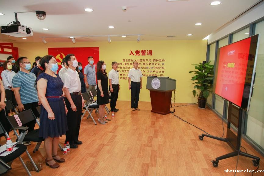 主题党课在庄严的国歌声中拉开帷幕。在鲜红的党旗下,由齐勇领誓,全体与会党员重温了入党誓词。
