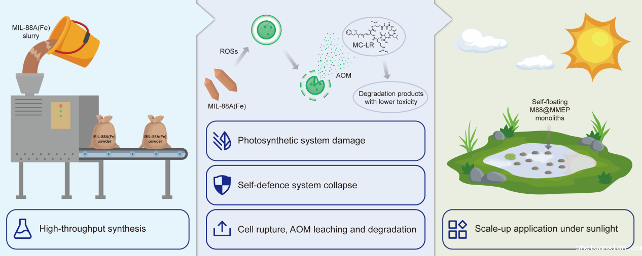 铁基金属有机框架光芬顿高效去除水中的铜绿微囊藻及次级污染物