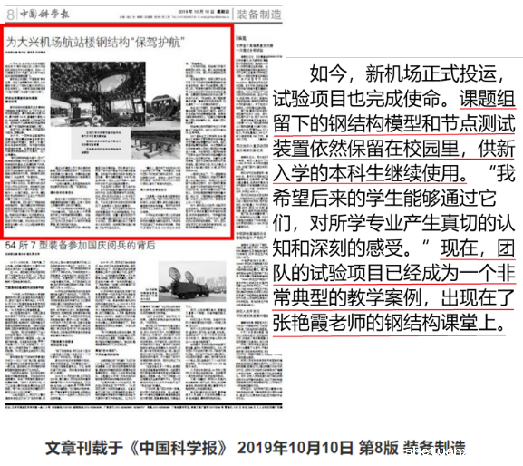 二十多年来团队依托国家科研课题,完成了近百项大型钢结构试验,为行业破解技术难题。我因此获得了中钢协钢结构杰出人才奖,同学们则亲切的称呼我为“钢结构女神”。