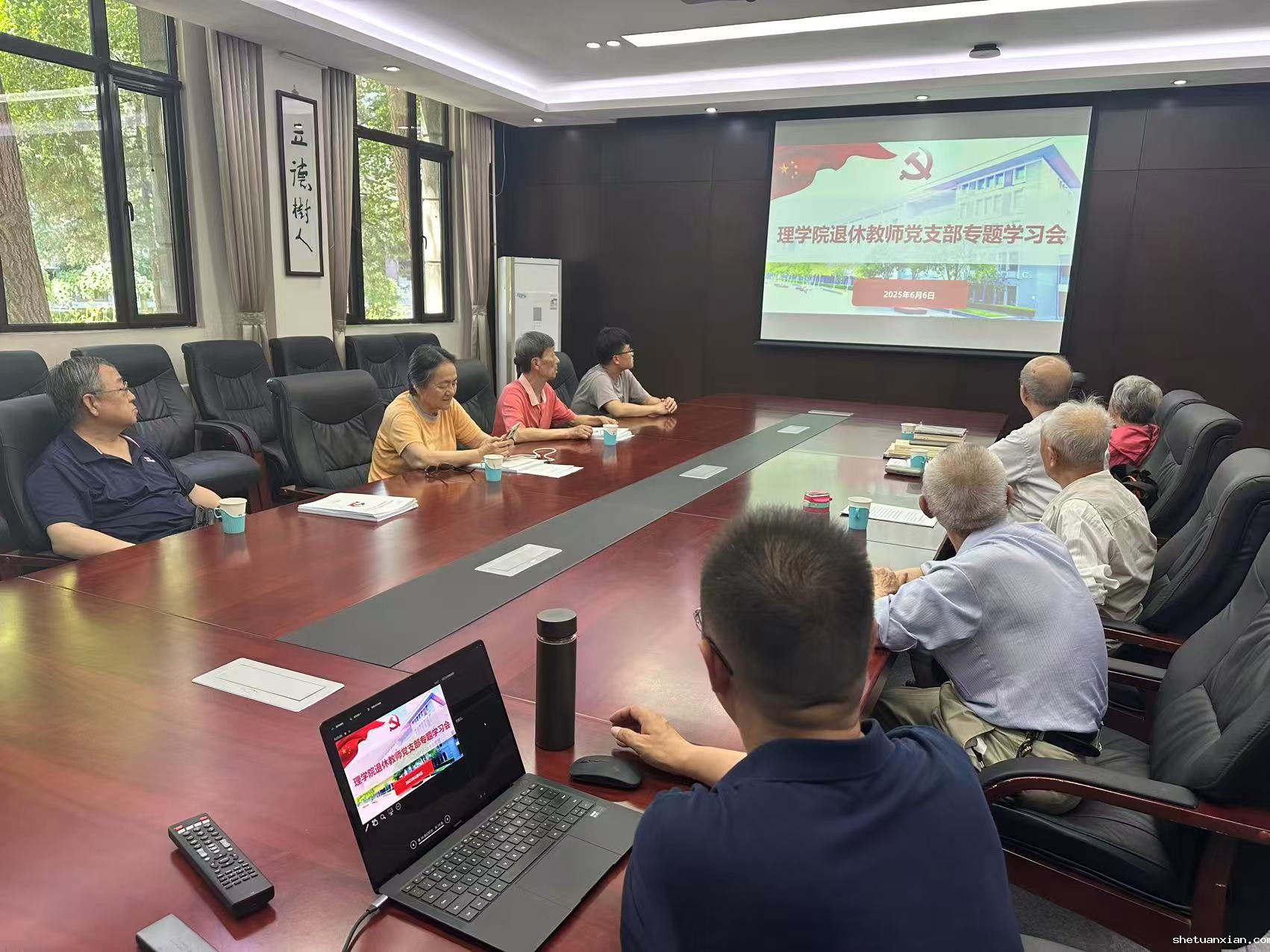 6月6日,理学院教工退休党支部召开深入贯彻中央八项规定精神学习教育专题会,学院党委书记毛发虎、专职组织员吴雨桐应邀出席。