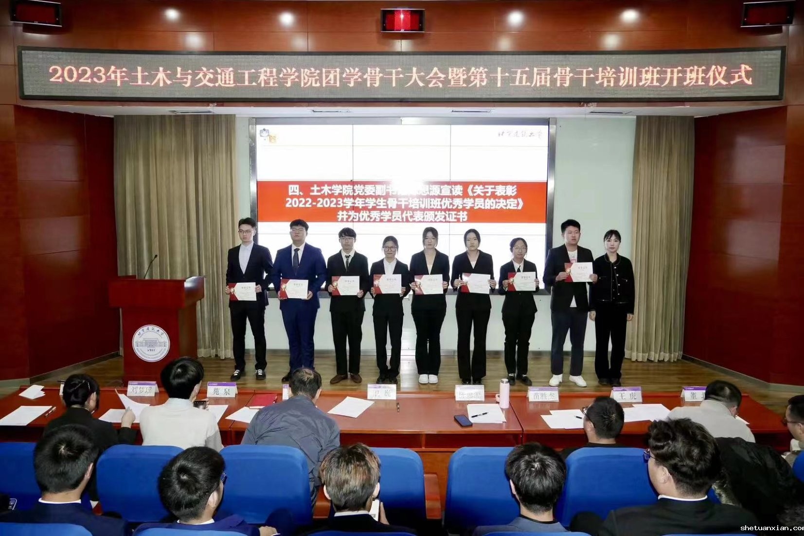 会上,陈思源宣读《关于表彰2022-2023学生骨干培训班优秀学员的决定》并为优秀学员代表颁发证书。苑泉为新任团学骨干代表颁发聘书,辅导员黄元景介绍了本期“北斗”学生骨干培训班的具体方案,学生会主席团成员于淋西介绍了本年度团学工作计划。