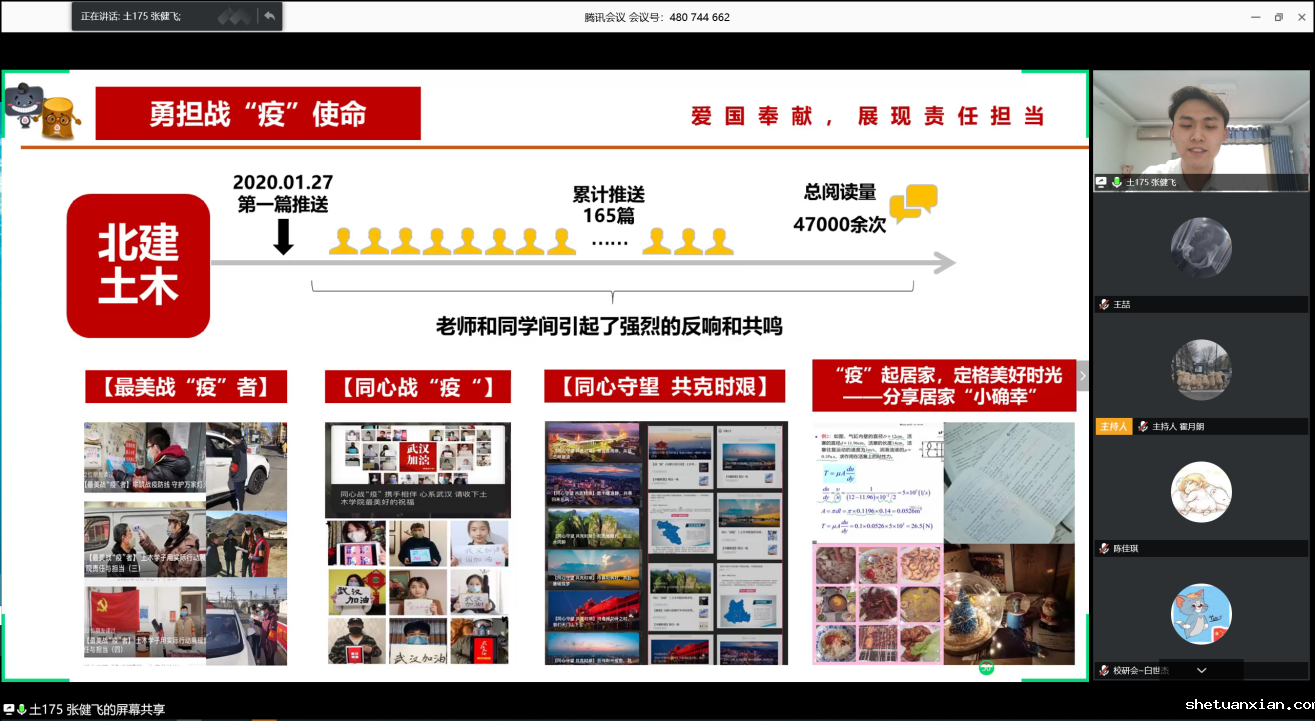 4月21日,按照“五·四达标创优”竞赛工作要求,学校召开了2020年“五·四达标创优”竞赛线上答辩会。经过全校各级团组织广泛动员组织、评比推荐,共有44名优秀个人和16个优秀团支部参加答辩会。经答辩评比,推选出校级“十佳团支部”、“十佳共青团员”和“十佳学生干部”。