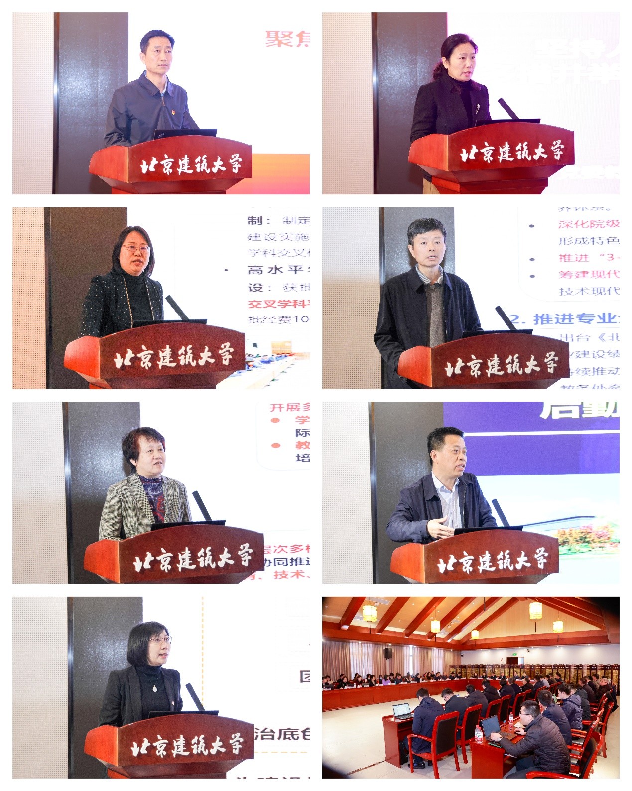 张大玉科学分析了当前学校面临的发展机遇,从时代背景来看,飞速发展的现代信息技术对人才培养模式带来变革影响,对教学关系提出新挑战,我们要结合新一轮人才培养方案修订,大力推进数字教育发展。从区域优势来看,2024年是京津冀协同发展十周年,学校在践行京津冀协同发展上做出很多探索,我们要结合相关工作和成果,准确把握形势,寻找更多教育资源。从行业形势来看,住建部当前尤其关注科技人才融合以及学科专业建设等问题,这对学校是一个良好发展机遇,我们要对行业未来树立起正确的认知和研判,坚信行业的发展潜力和美好前景。从服务国家战略部署来看,北建大在文化遗产保护工作方面具有深厚的历史积淀和研究传统,学校可进一步整合资源优势,推进相关专业交叉融合,为我国文化遗产保护传承提供有力的人才及科技支撑。