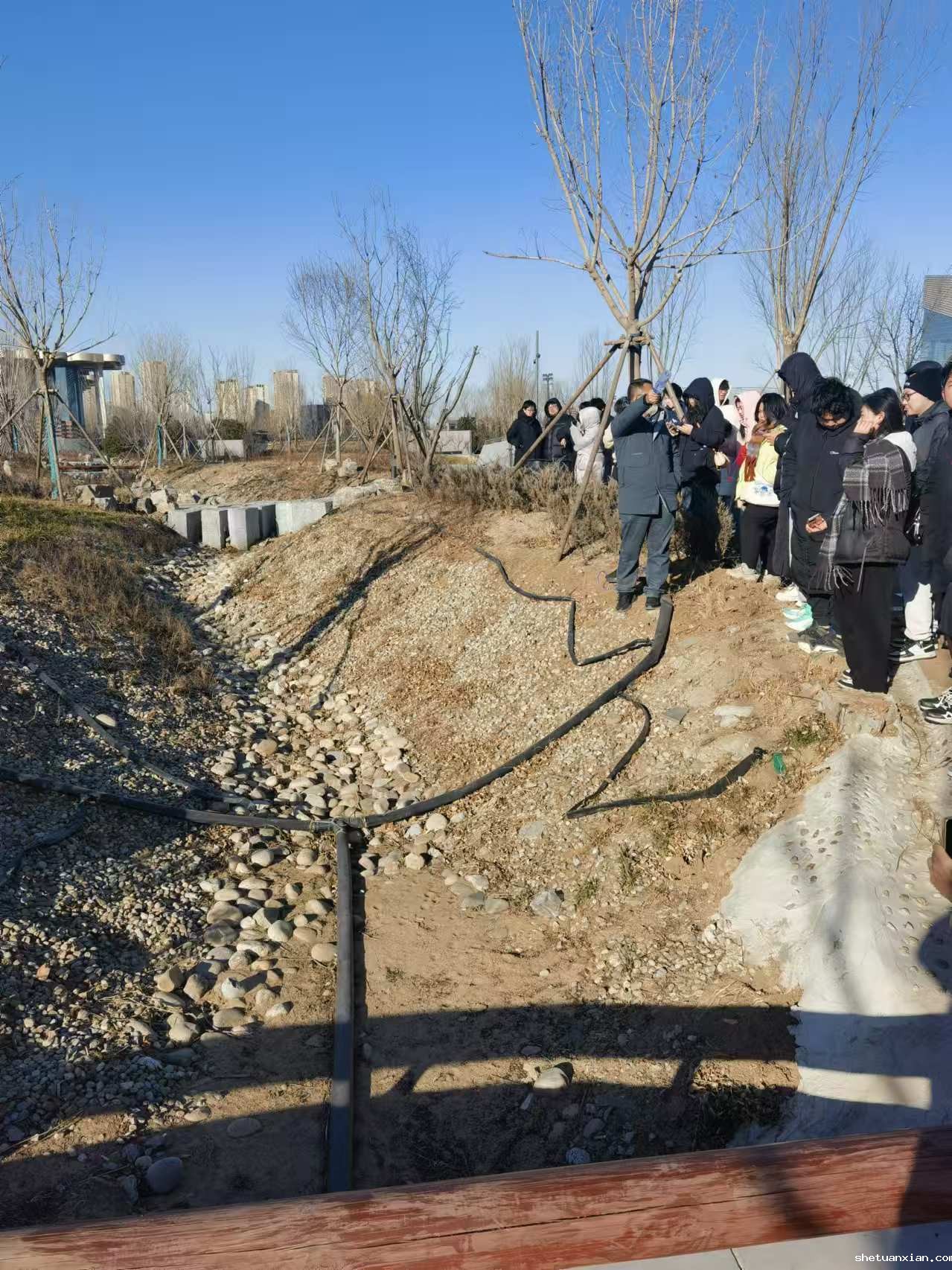 1月14日,张紫阳老师的带领同学们参观了北京市通州区三大建筑海绵城市建设。通过实地参观,学生们了解了海绵城市对城市排水系统的作用,并实地了解了典型海绵设施的构造和功能,增加了工程经验。