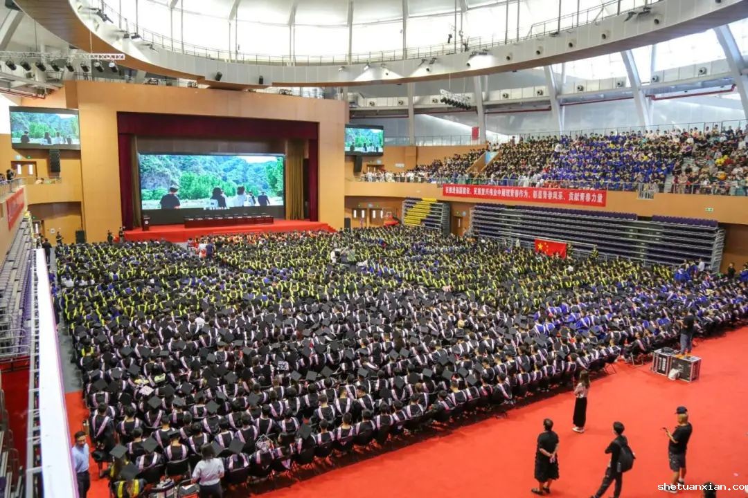 五星红旗冉冉升起,国歌声在场馆中回荡,毕业典礼正式开始。