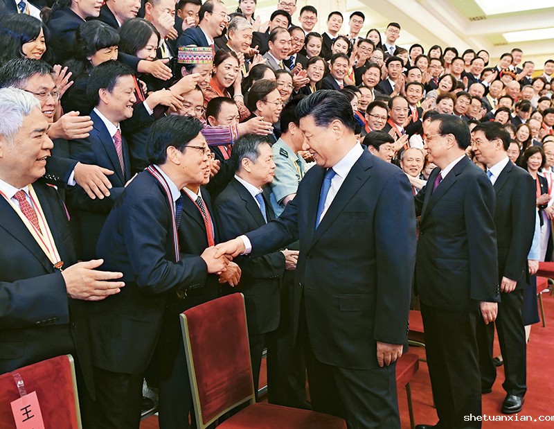 2019年9月10日,党和国家领导人习近平、李克强、王沪宁等在北京人民大会堂会见庆祝2019年教师节暨全国教育系统先进集体和先进个人表彰大会受表彰代表。 新华社记者 申宏/摄
