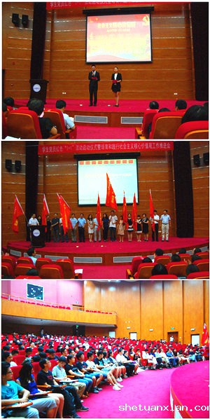 为在学生中更好培育和践行社会主义核心价值观,宣传弘扬中国精神,挖掘凝练建大故事,推进社会主义核心价值观落细落小落实,6月16日下午,我校在大兴校区召开学生党员红色“1+1”活动启动仪式暨培育和践行社会主义核心价值观工作推进会,校党委副书记张启鸿、组织部、宣传部、学工部、研工部、团委等职能部门负责人、各学院党委副书记、团委书记、辅导员、思政课教师代表等出席大会,各学院学生党员代表和55期入党积极分子培训班学员参加会议。会议由学工部副部长冯永龙主持。