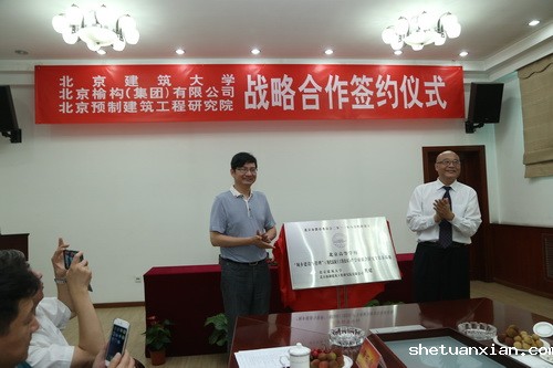 近日,北建大与北京榆构(集团)有限公司、北京预制建筑工程研究院举行校外实践教学及产学研联合研究生培养基地签约仪式。学校副校长汪苏、土木学院、研工部、学工部、教务处相关人员,北京榆构有限公司董事长李毓福、北京榆构有限公司总经理王玉雷、北京榆构有限公司总工程师兼北京预制建筑工程研究院院长蒋勤俭及公司相关人员出席了签约和揭牌仪式,北京榆构有限公司技术部部长、我校校友张勇主持仪式。