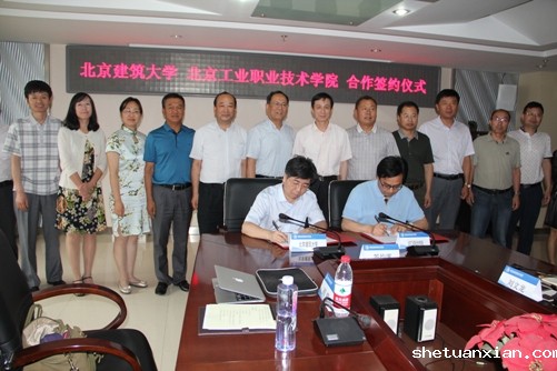 我校副校长李爱群表示,希望通过高端技术技能人才贯通培养试验项目的推进,进一步加强两校间的合作与交流,努力为学生提供最优质的教学资源,实现人才培养的跨越式发展。随后,李爱群与北京工业职业技术学院副校长刘兰明代表双方签署合作协议。仪式结束后,两校就合作项目的实施开展进行座谈交流,北建大一行还参观了北京工业职业技术学院实训基地。
