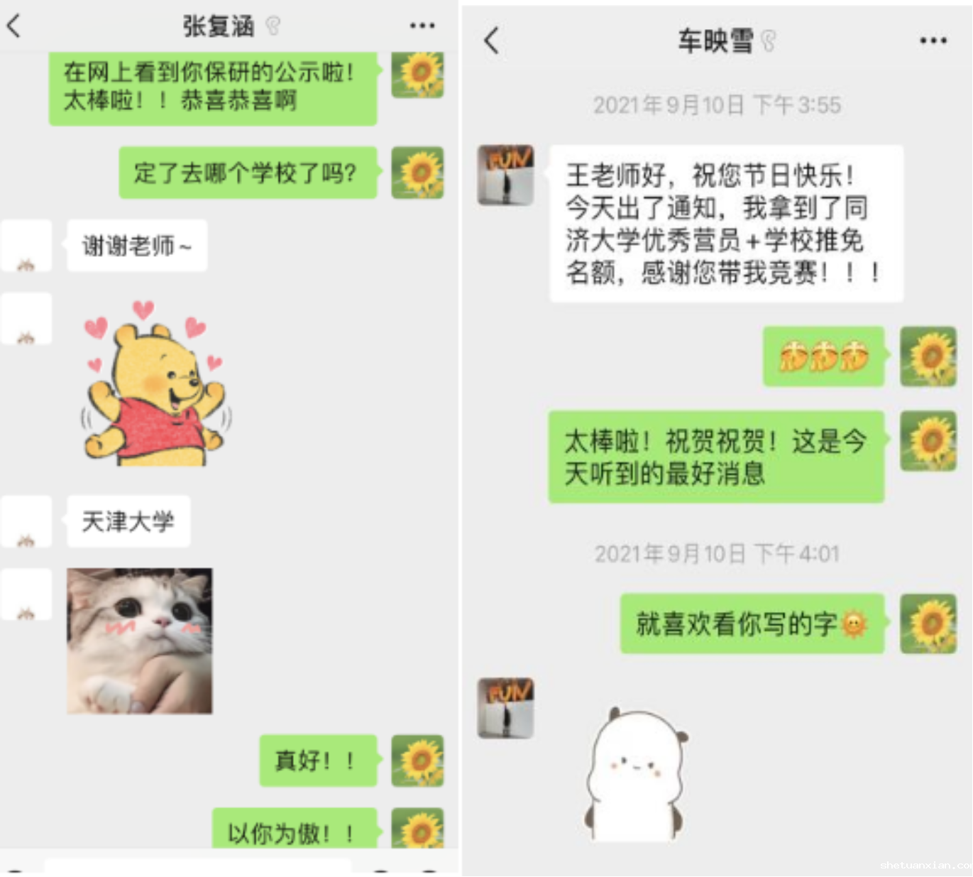 “我无比庆幸读研的时候加入了王老师的课题组!”研究生马仕杰说,入学两年以来,无论学习、科研还是生活,王老师都给了我们无微不至的关怀。在修改论文时,她的细心、耐心和严格要求让我受益很多。除学习之外,王老师也不放松对我们为人处事的教导,让我们学习做人的道理。