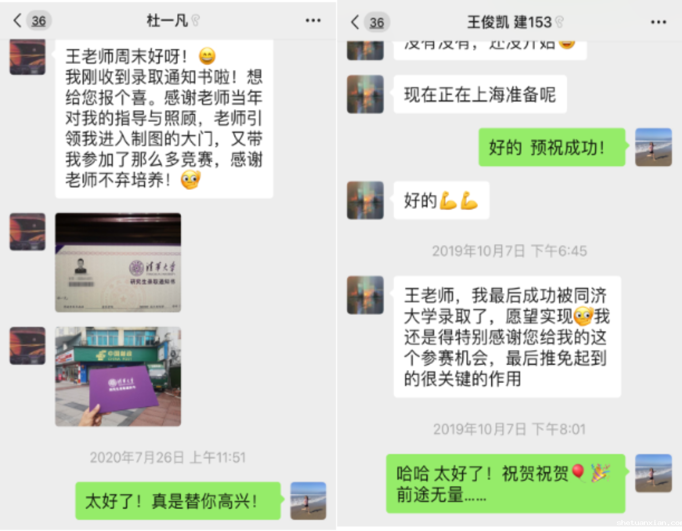 多名同学在保研资格遴选、考研复试等环节因竞赛成绩优异,被清华大学、同济大学等知名高校录取,在学校逐渐形成了以点带面、以赛促学、以学促教的良性循环模式,提升了学生主动学习、主动参赛的积极性,同时也极大地提高了北建大在同类院校中的影响力。