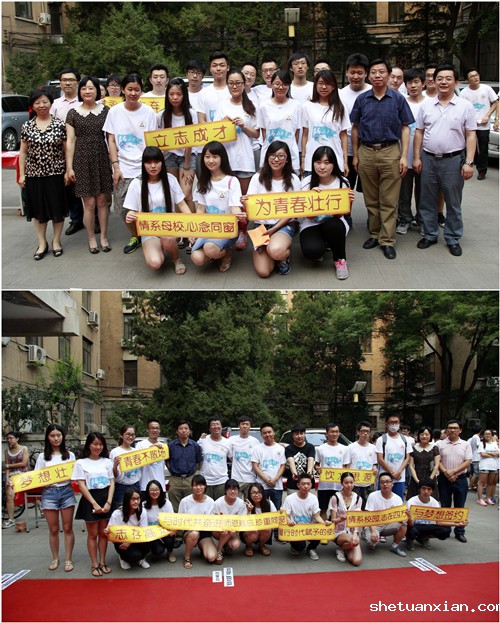 7月8日傍晚,教二楼门前热闹非凡,神采奕奕的老师们和青春飞扬的毕业生身着毕业文化衫,陆续到来。环能学院正在这里举办“壹壹不舍”2015届毕业生欢送会。活动内容包括毕业文化衫红毯秀、师生互赠礼物、毕业宣誓等。活动主题为“与梦想签约•向母校告别•为青春壮行”。校学工部部长黄尚荣、环能学院院长李俊奇、党委书记陈红兵、党委副书记黄琇及班级导师参加了活动。