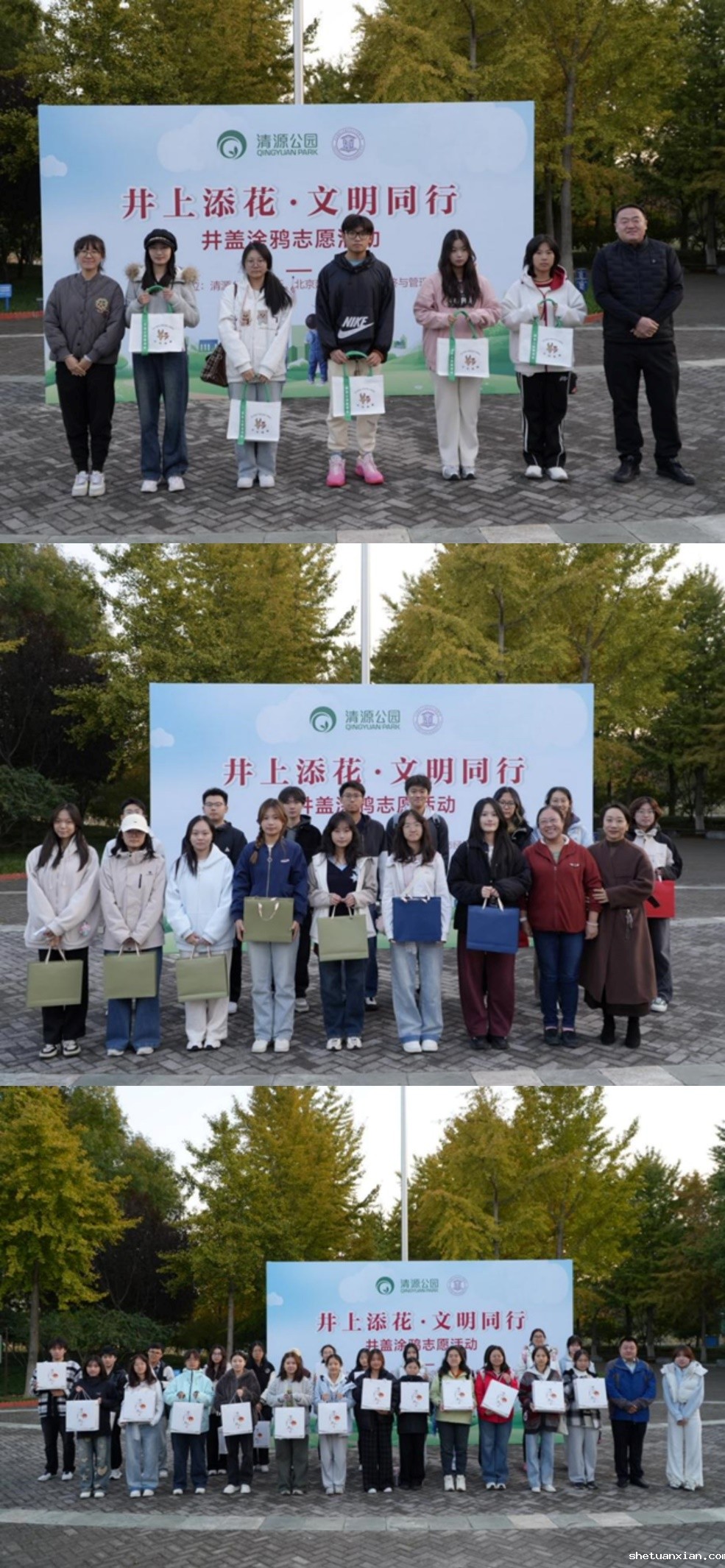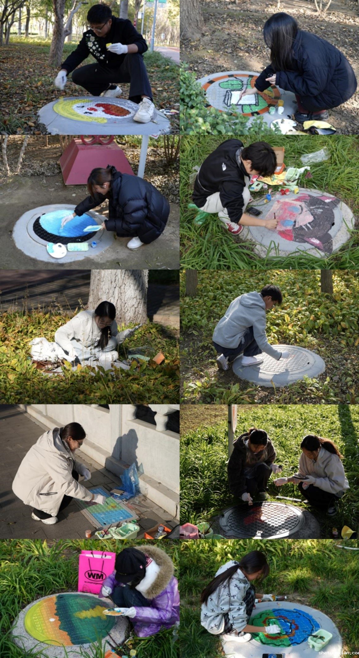 活动现场,学生们或蹲或站,在井盖上挥洒着创意与热情。一幅幅生动活泼、寓意深远的画面逐渐在井盖上呈现,不仅为公园增添了新的光彩,更让同学们在亲手雕饰的过程中,更成为同学们青春岁月的珍贵见证。据统计,本次活动共完成了89枚井盖的绘制,涵盖了五大类井盖,包括环保、清廉等主题,志愿时长累计超过400小时。