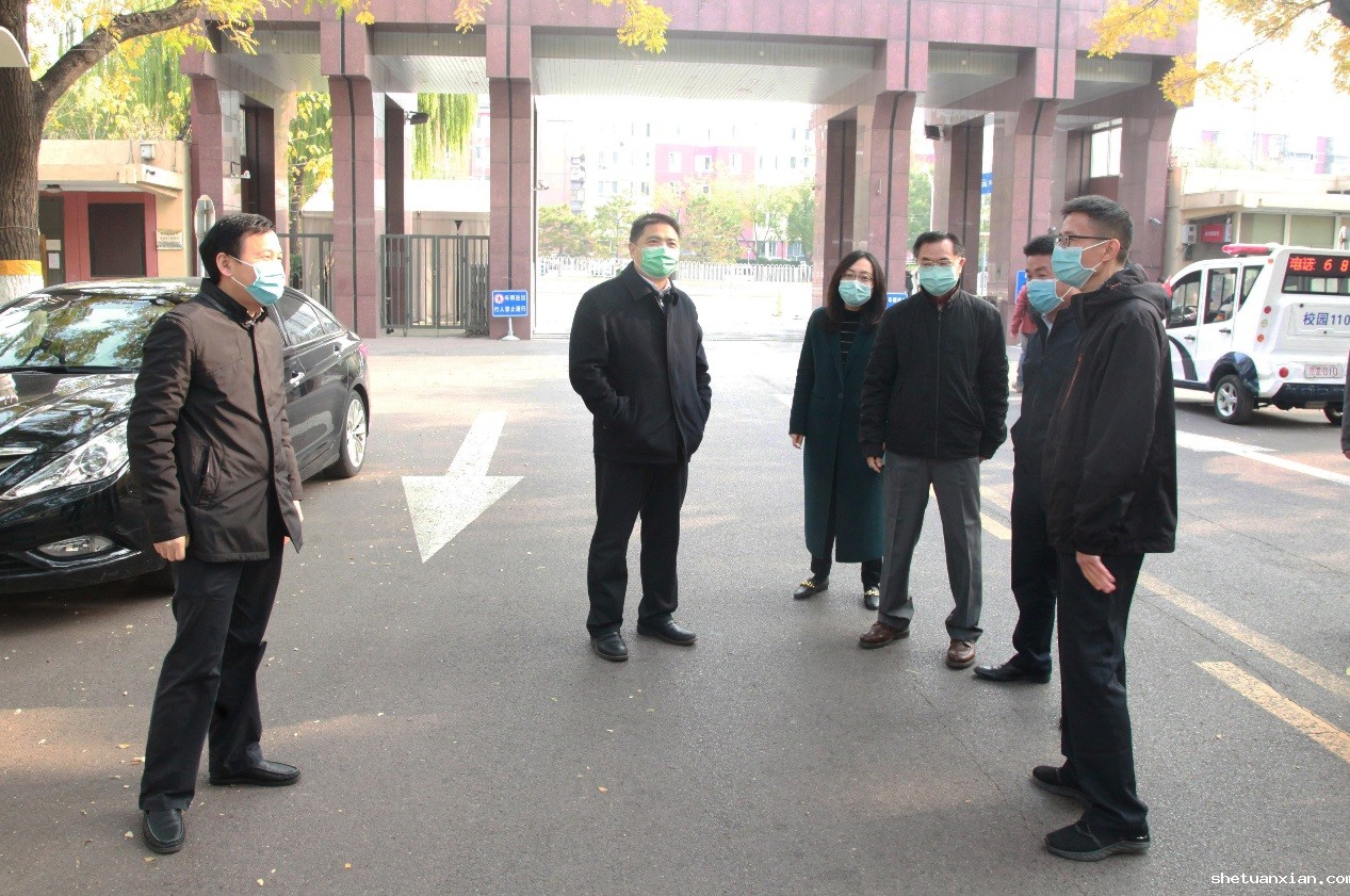 11月11日,市教工委副书记狄涛、市教工委宣教处处长寇红江来学校西城校区检查垃圾分类工作。学校副校长李维平,党政办公室、党委宣传部、保卫处、后勤管理处负责人陪同检查。