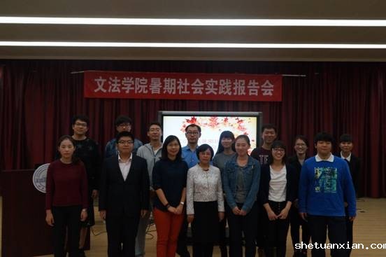 2015年暑期,文法学院悦群志愿者服务团分赴北京市西城区、大兴区,山东省济宁市汶上县、美国南康涅狄格州立大学等地进行社会服务和调研,内容涵盖扶贫助残、帮扶留守儿童和老人、自闭症儿童帮扶、社区服务、关爱北京外来务工人员子女及法律咨询等方面。 10月13日,文法学院暑期社会实践报告会于基础楼D座模拟法庭举办,文法学院党委书记肖建杰、校团委书记朱静、院党委副书记康健、院团委书记杨举、理学院团委书记陈思源聆听了报告会。同时参加报告会的还有文法学院及兄弟学院学生100余名。