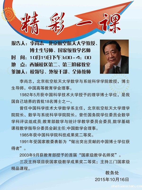 【专题讲座】国家级教学名师北航李尚志教授精彩一课