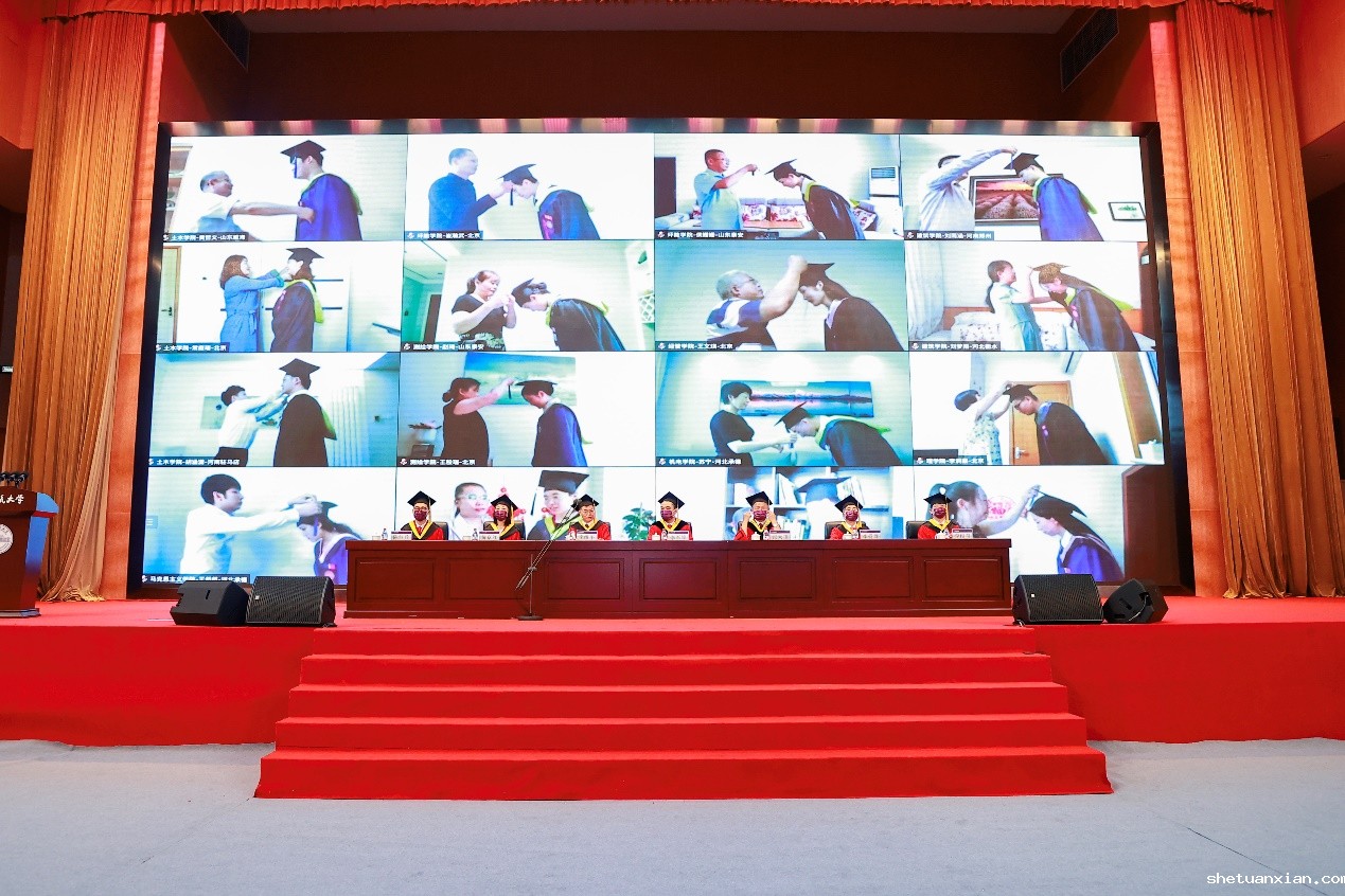 受疫情影响,未能返校的毕业生由家长进行拨穗礼。学校郑重承诺,欢迎大家今后回来参加任何一届毕业典礼和学位授予仪式。