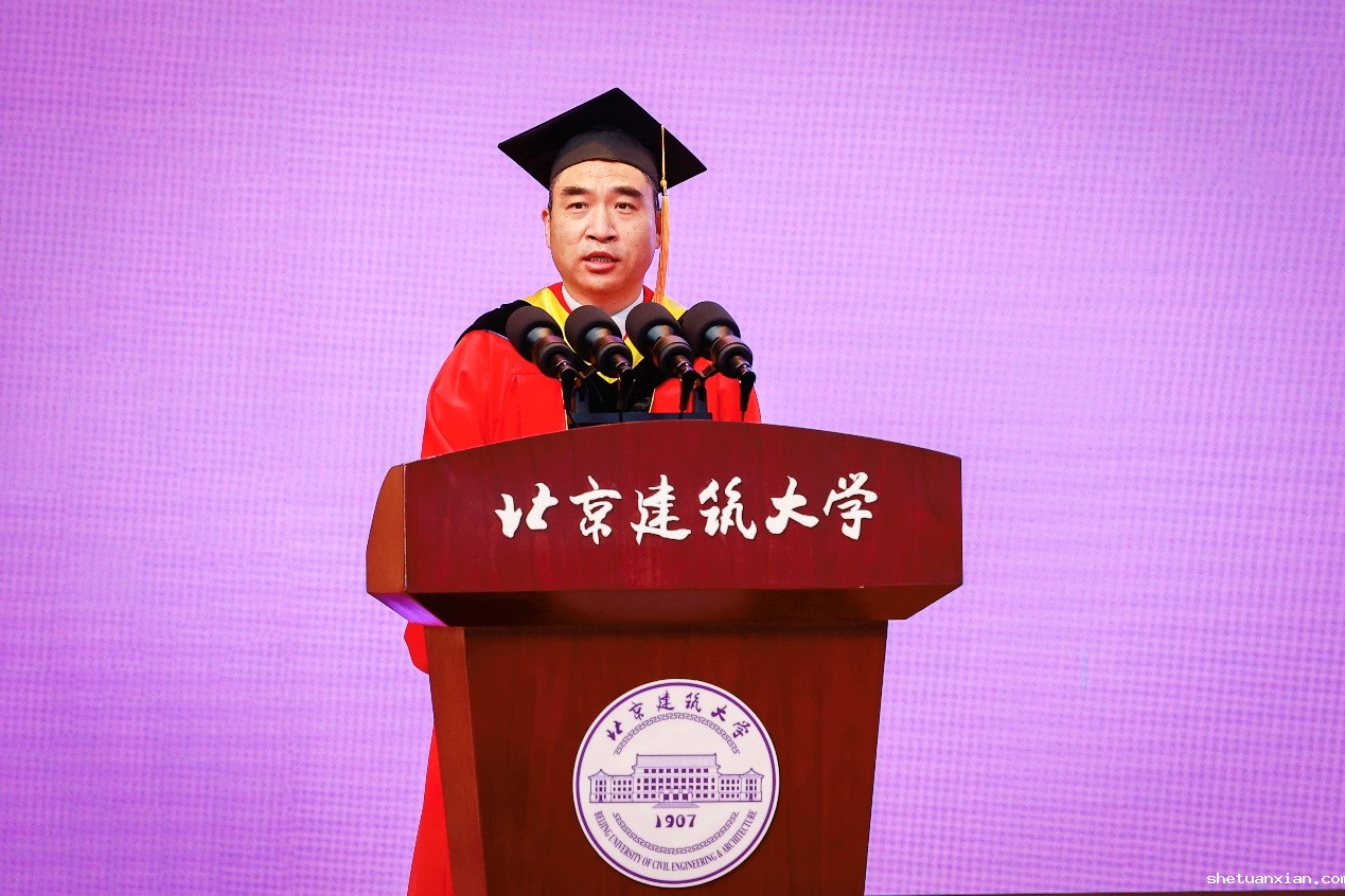 面对即将扬帆远航的莘莘学子,党委副书记、校长张大玉开讲“最后一课”。他带领同学们回顾了这些年国家发展、行业改革、学校创新等变化,细数同学们成长与收获。抗疫,成为这届毕业生不可磨灭的特殊记忆。他谈到,近年来,疫情给校园学习生活带来了诸多困难和挑战。同学们积极乐观,迎难而上,理解、配合和支持学校疫情防控工作;面对严峻复杂的疫情形势,学校及时调整教学计划,创新教学模式,想尽各种办法来弥补无法与你们当面交流带来的“遗憾”。“我相信,这些难忘的经历和一时的‘遗憾’,一定会淬炼出你们更加坚韧的性格和执着的精神,一定会以一种独特的方式帮助你们成就更好的人生。”他寄语广大毕业生,一要厚植爱国情怀,二要树立鸿鹄之志,三要坚持守正创新,四要坚守实干笃行,“无论你今后身处何地、人在何方,北建大永远是你们最坚强的后盾、最温馨的港湾,请记住常回家看看!”