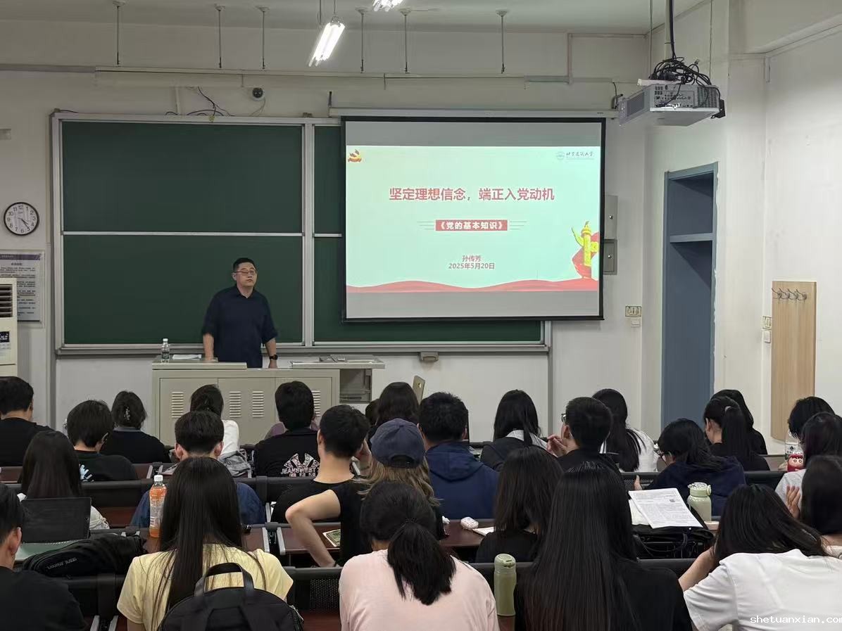 孙传芳老师以“坚定理想信念,端正入党动机”为主题展开讲授,从正确认识入党动机到正确的入党动机,孙老师强调只有端正入党动机,才能经受住党组织的考验。随后,孙老师概述了思想入党的突出表现就是自觉听党话、跟党走,矢志不渝终生为党和人民事业不懈奋斗,并希望广大同学能够坚定理想信念,躬身实践,以实际行动争取早日入党。