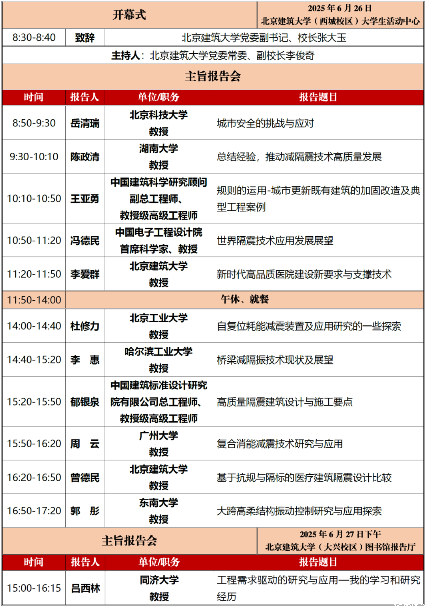 经主办单位研究,将于2025年6月25日-27日在北京市召开第三届全国工程抗震与隔震减振技术论坛。本次论坛特邀中国工程院院士、中国科学院院士、全国工程勘察设计大师、长江学者、国家杰青、企业总工程师等专家分享工程抗震与隔震减振技术方面的最新研究和实践成果。欢迎来自高校、科研、设计、施工、生产企业和审图机构等单位的相关人员及政府管理部门同仁积极报名参会。