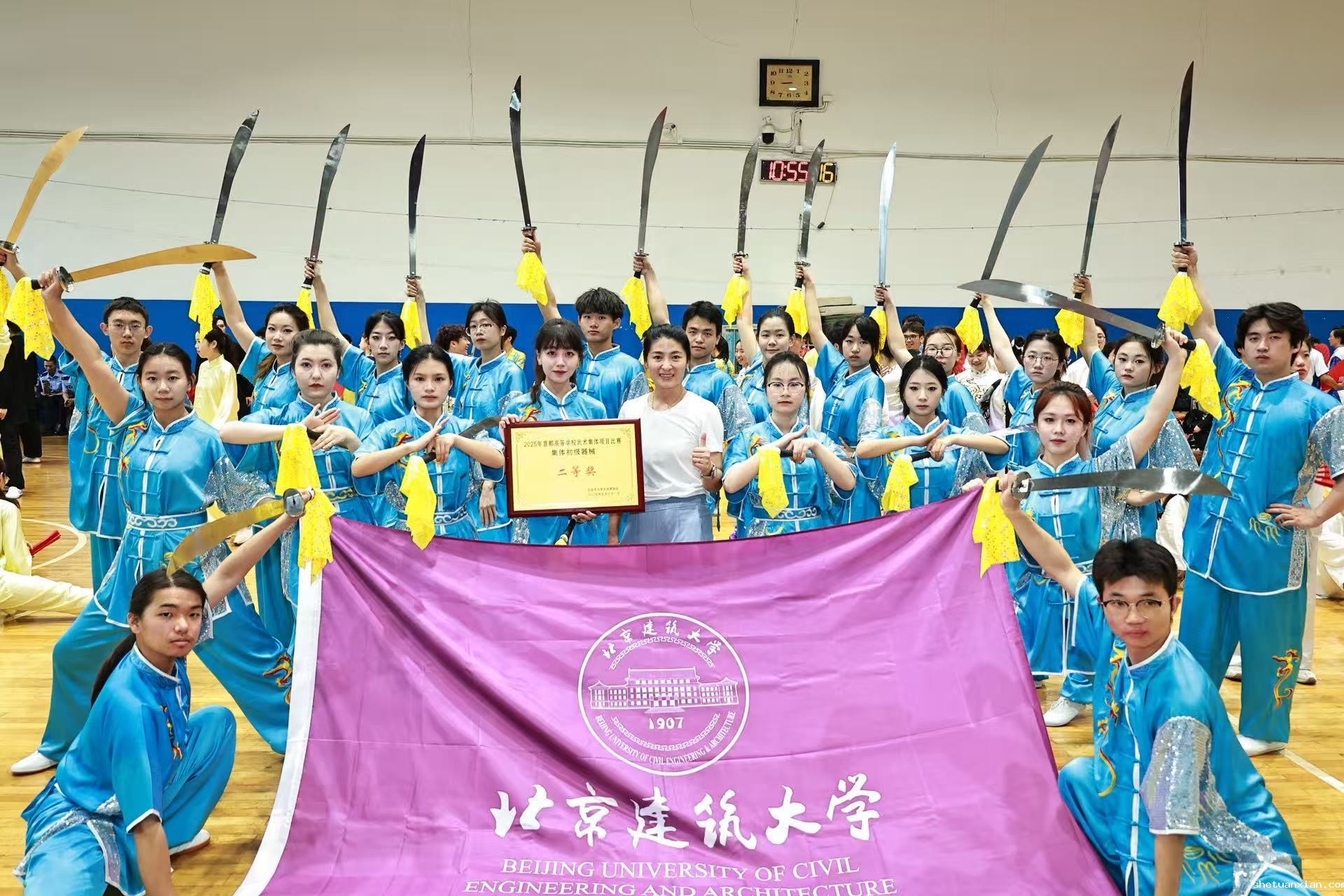 我校武术队在付玉楠、施海波两位老师的长期指导下,深耕武术教学与训练。作为面向北京高校武术普修班学生的专业性赛事,本次比赛设置初级拳术、初级器械教学套路、太极功夫扇、太极拳剑套路及自选套路等多个集体项目。参赛学生以扎实的武术功底与精湛的表演技艺,不仅生动展现了高校武术教学的阶段性成果,更通过各代表队独具特色的演绎,诠释了对武术文化的深刻理解。同学们在台下的刻苦训练与沉淀积累,最终在赛场转化为拼搏进取的精神风貌与娴熟精准的技巧呈现,其精彩表现赢得现场观众热烈喝彩,也让武术盛会的魅力深入人心。