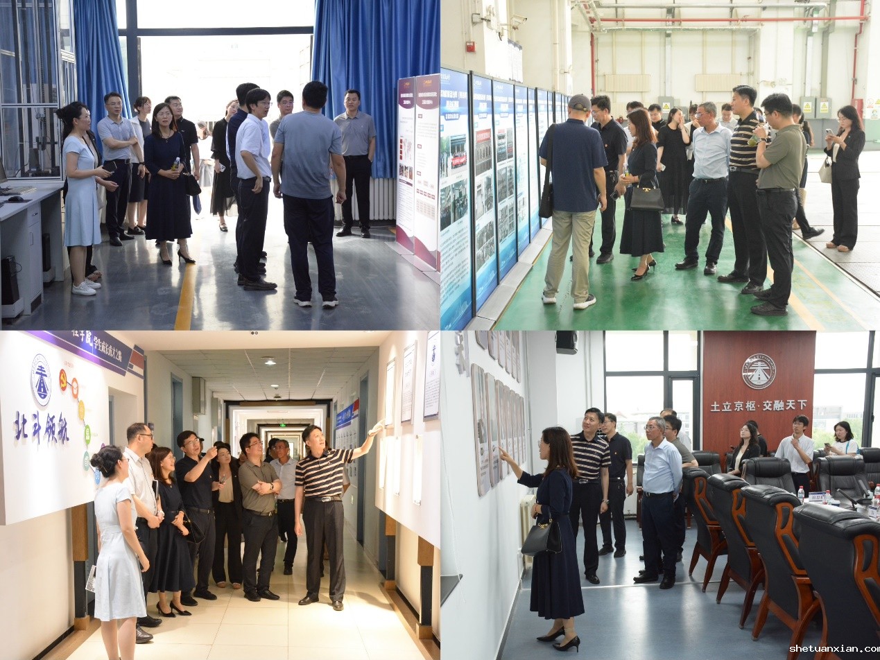 调研团一行先后参观了学院标志性成果与平台。科研创新平台:大型多功能振动台阵实验室、住建部建筑垃圾资源化利用创新中心;科技文化景观:大兴机场航站楼大比例缩尺模型、生态自发光道路铺装技术;文化遗产保护成果:云冈石窟第十八窟等比例3D打印模型;育人特色阵地:学院党建文化墙、北斗领航育人长廊等。