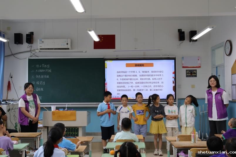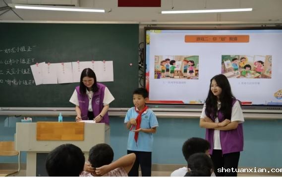 活动伊始,“小老师”们组织了“369”互动游戏,通过模拟不同的课间活动场景,让孩子们猜测行为的对错,瞬间点燃了课堂热情,为后续活动的开展营造了良好氛围。